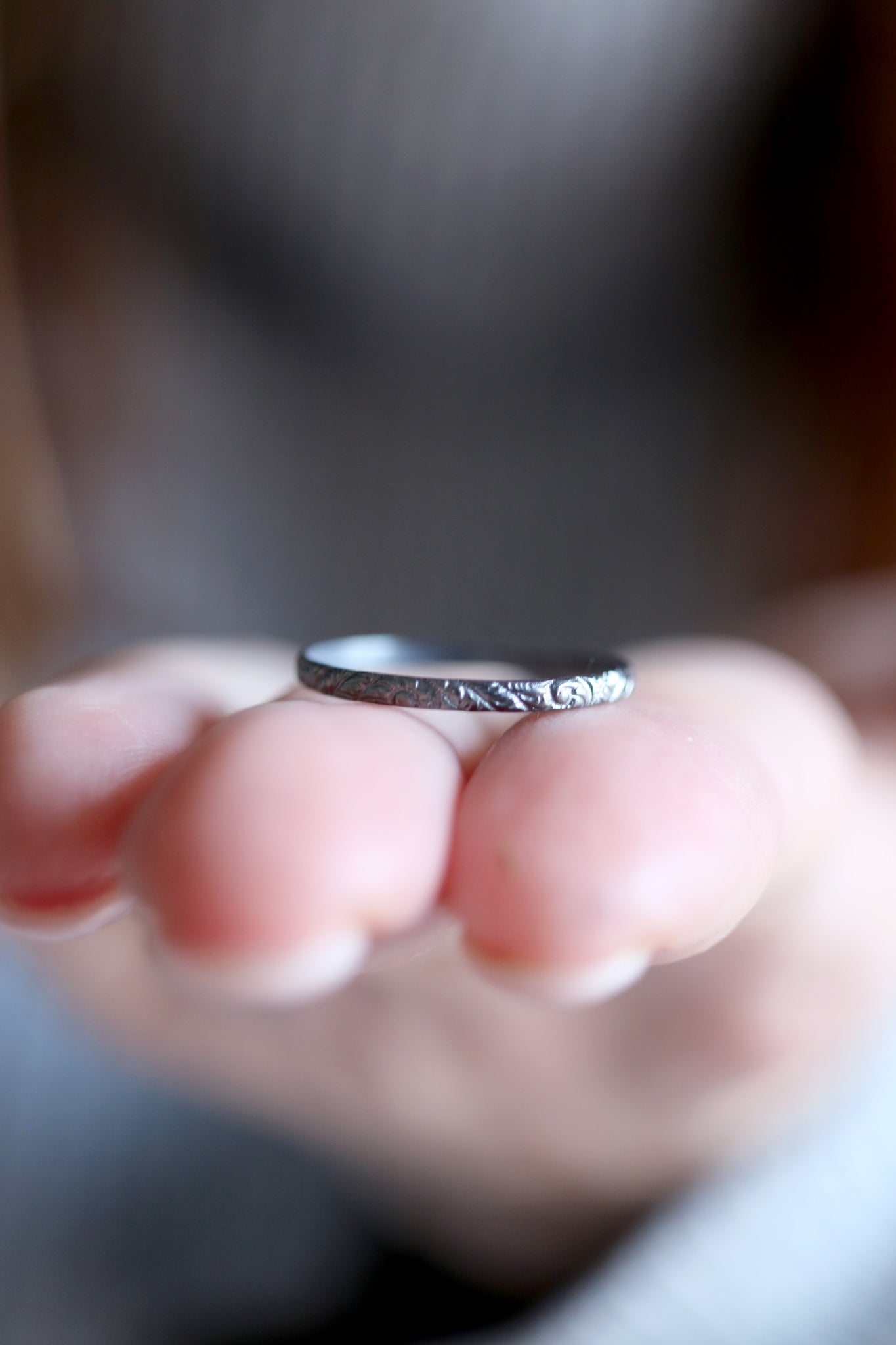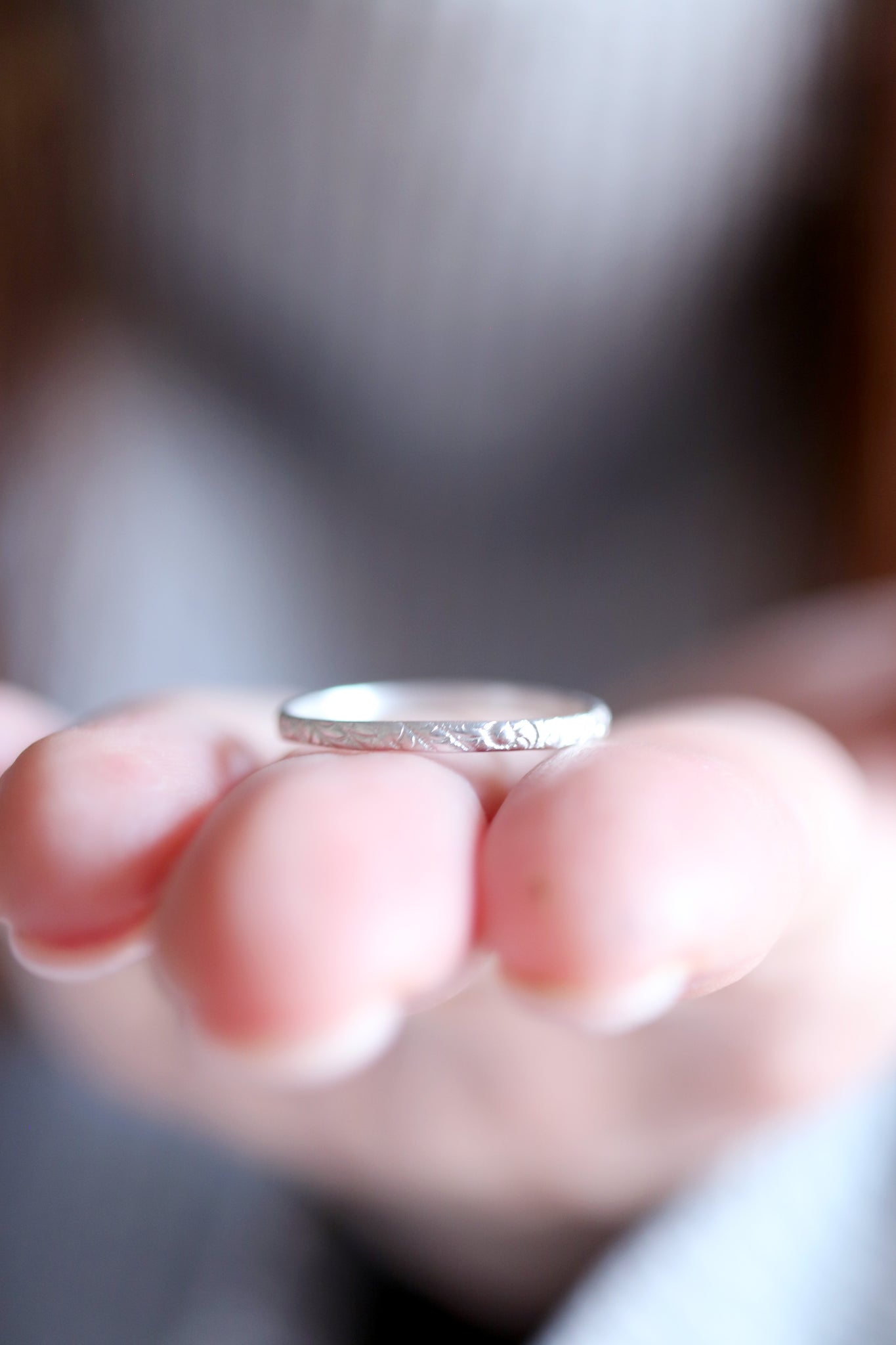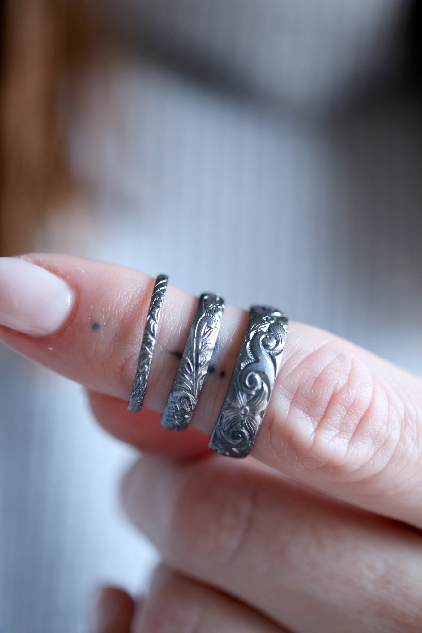 Anell Antique. Anell de plata amb textura antiga de flors. 2mm.