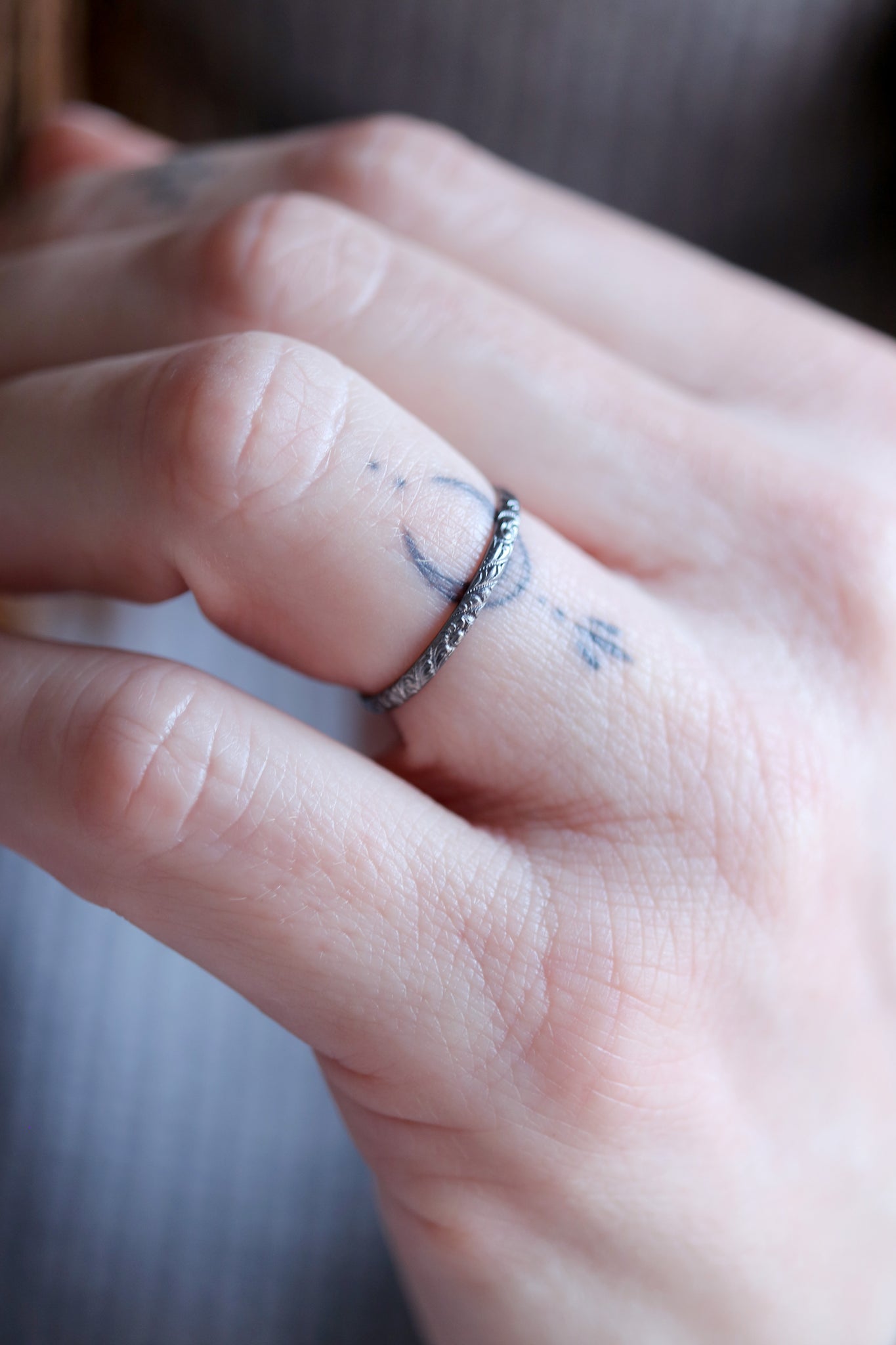 Finish: I can make the ring in three different finishes; white silver, black silver (oxidized) and Grey silver (half oxidized). You can choose the finish you prefer but  if you don't choose any finish I will send you the ring with the grey finish.