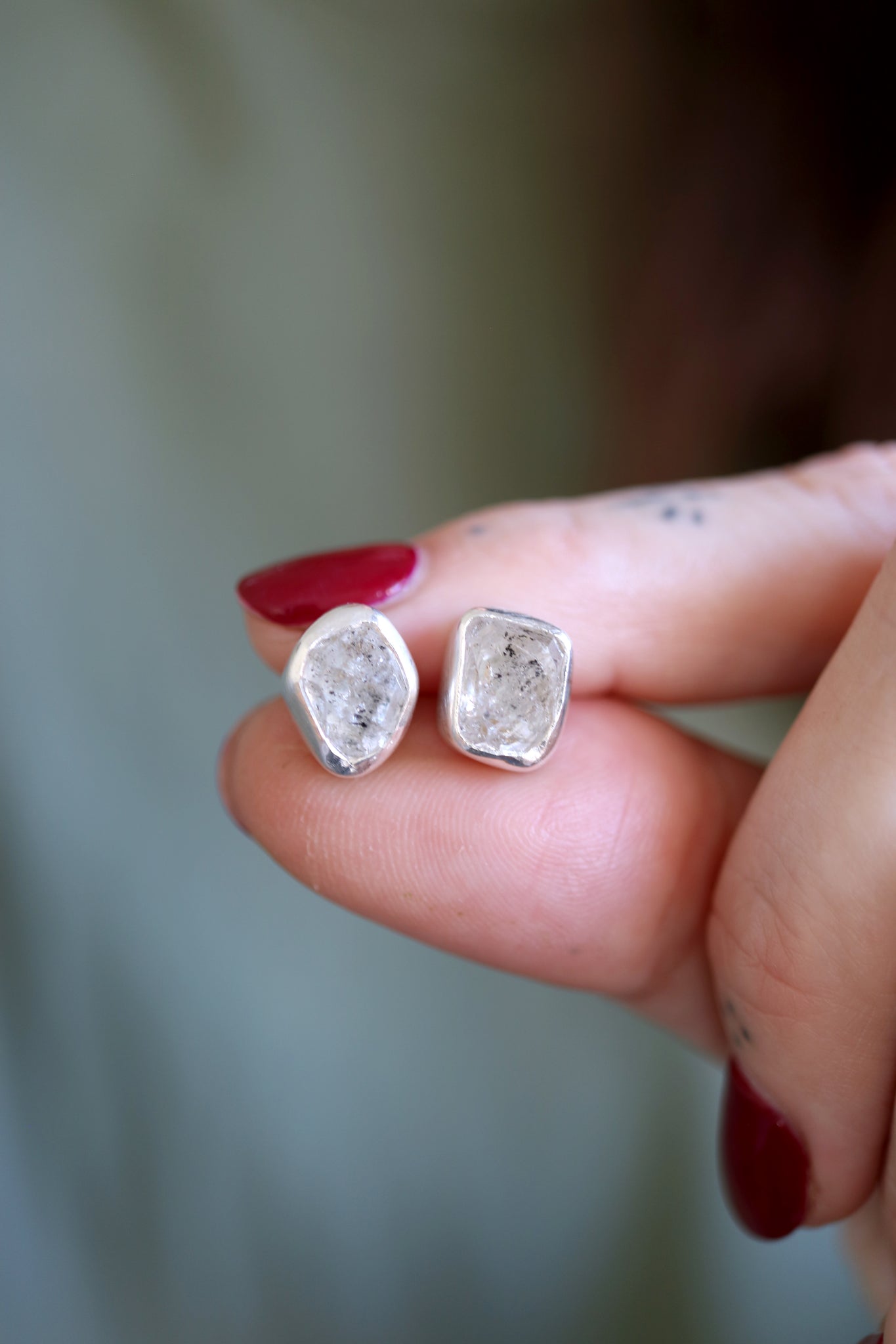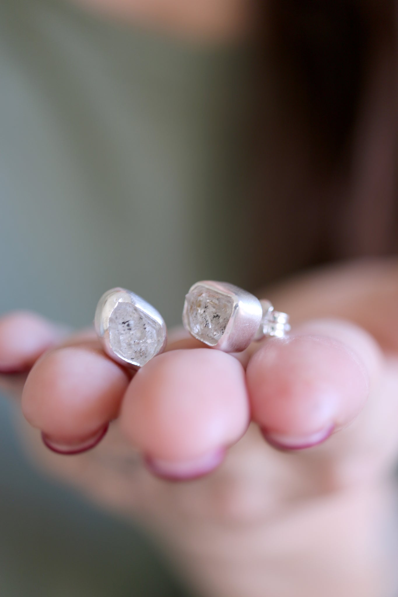 Sterling silver stud earrings with natural Herkimer Diamonds.