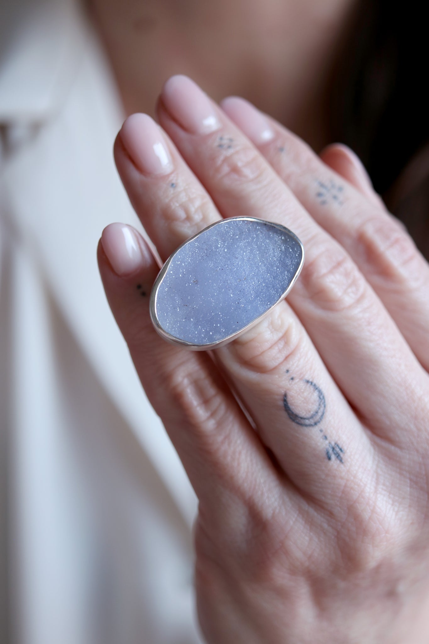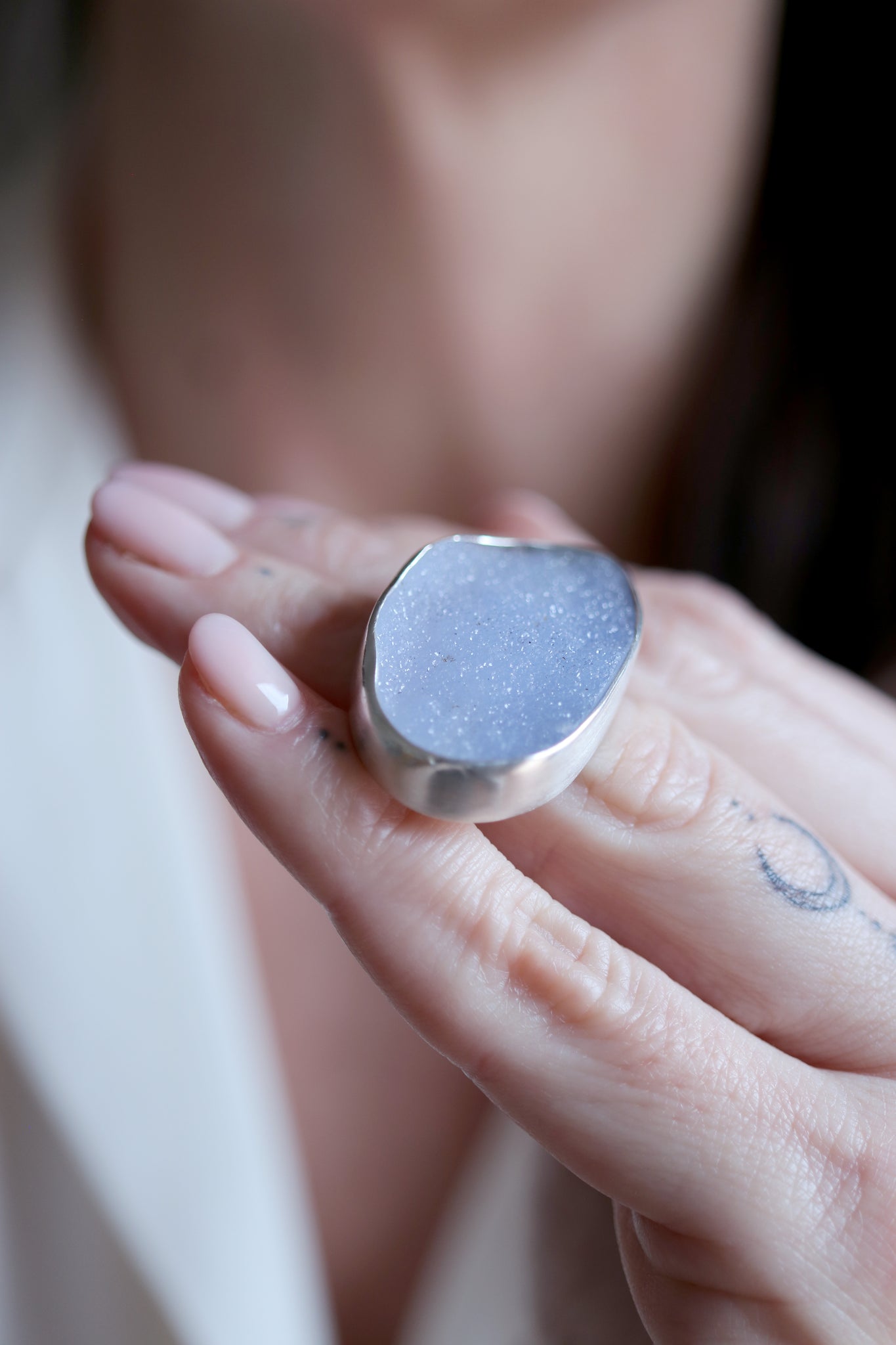 Anell de plata amb Calcedònia cristal·litzada.