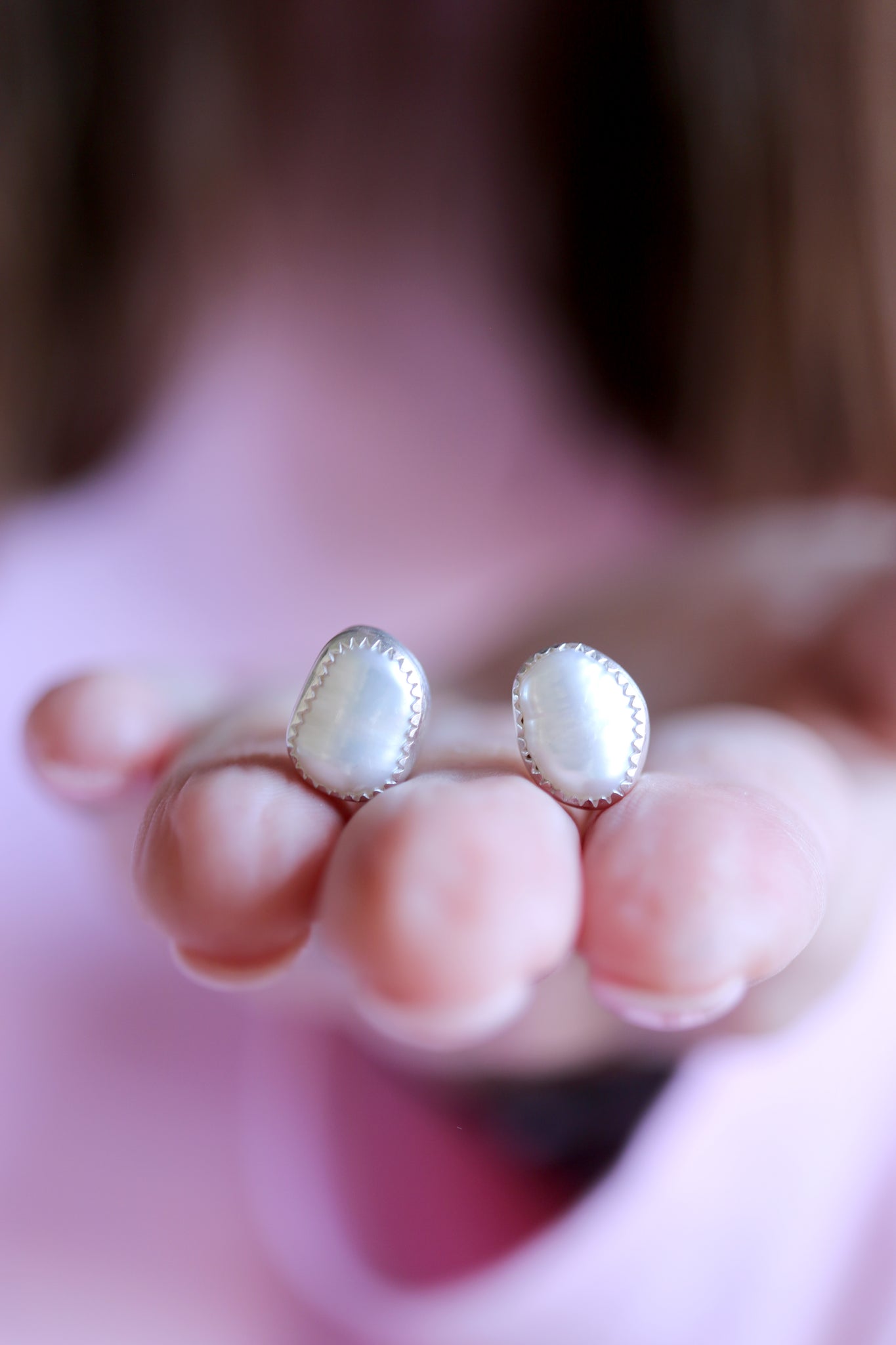 The Pearls are sweet water cultivated pearls with irregular shape so each one is slightly different, they have been paired as similar as possible.