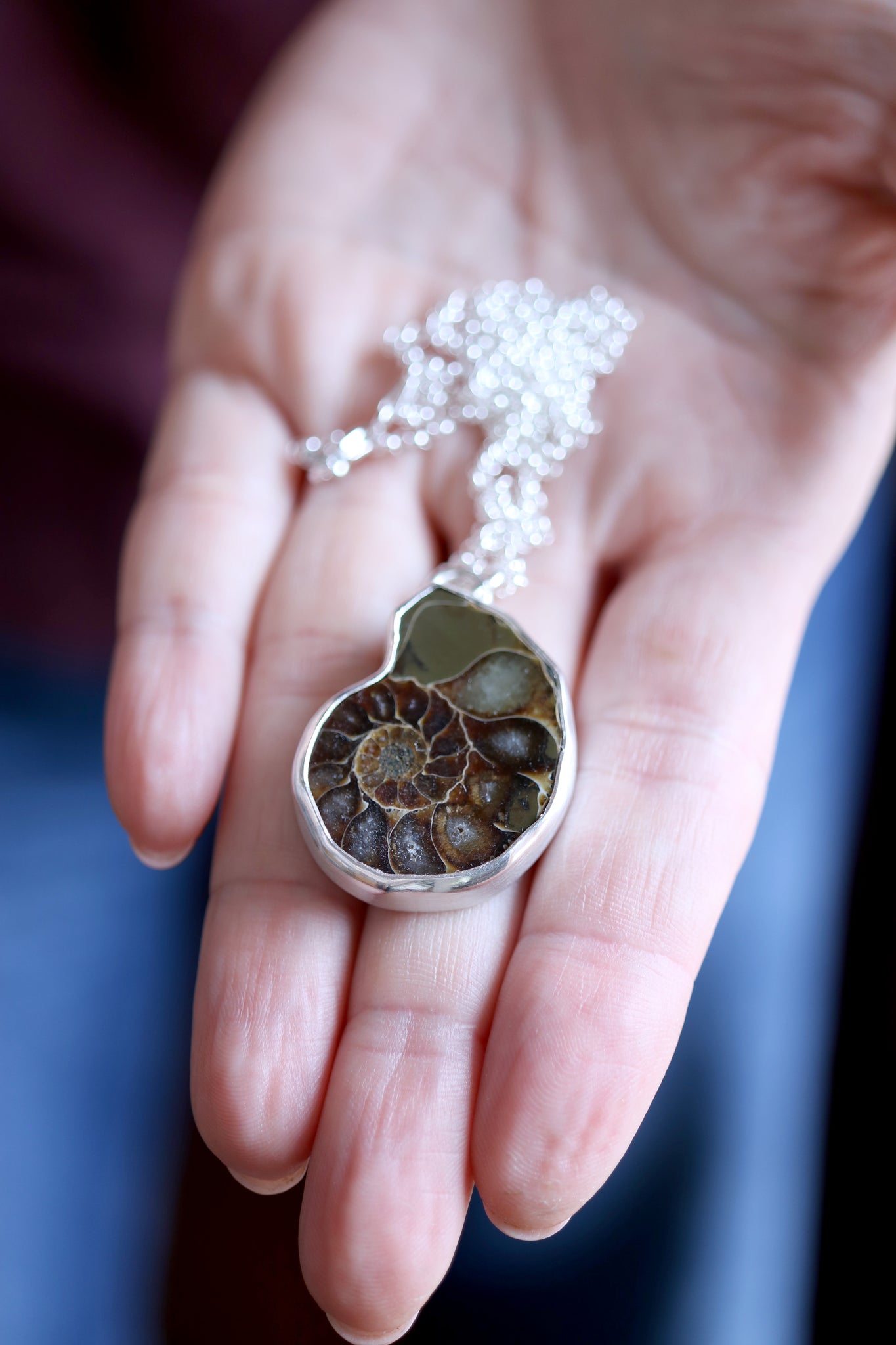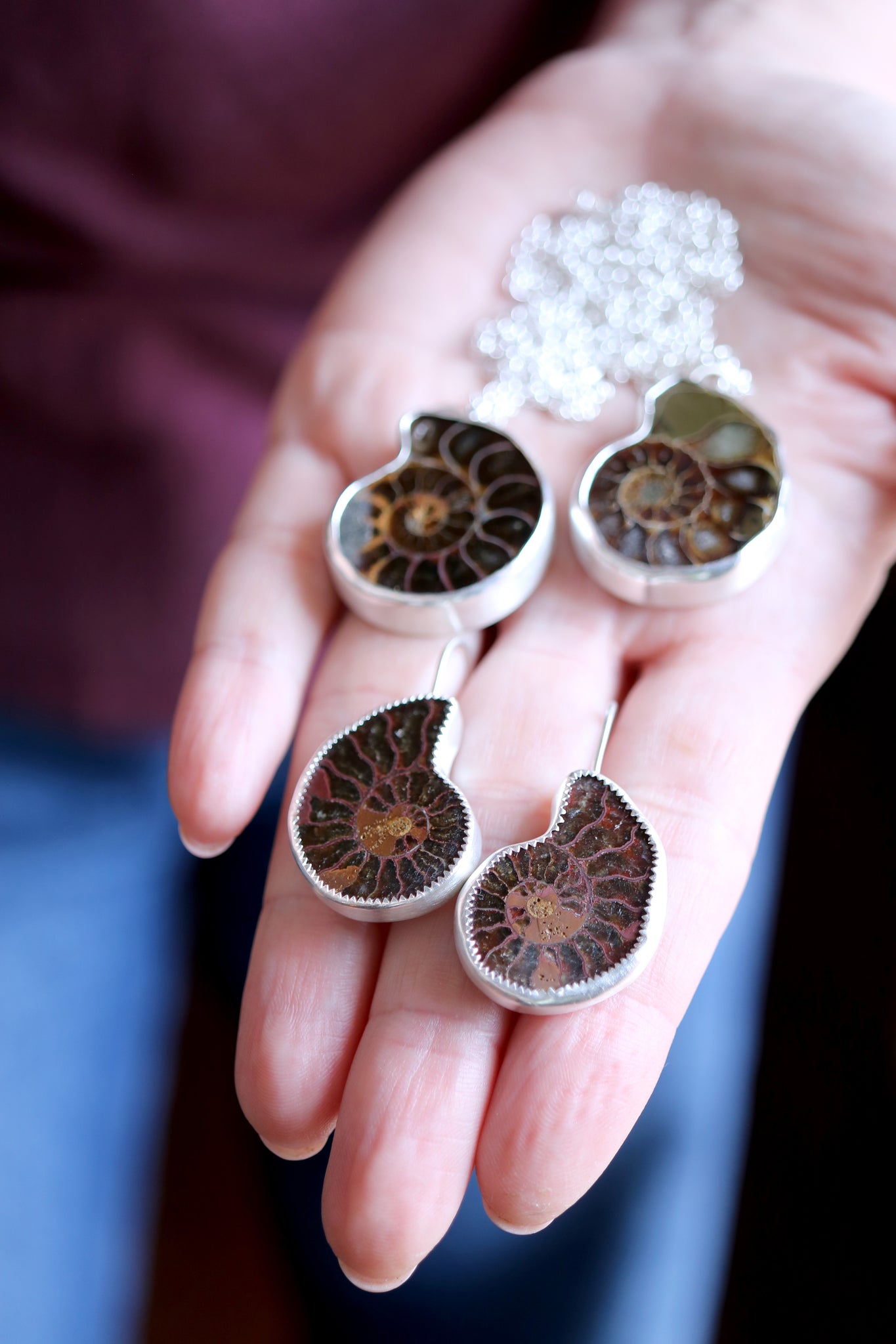 Els Ammonits són fòssils d'un mol·lusc que va viure fa entre 400 i 66 milions d’anys. Són completament naturals, no estan tenyits, i tenen tons marronosos.