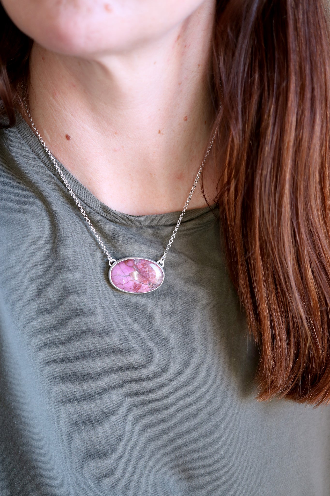 Sterling silver pendant with Cobaltocalcite cabochon.