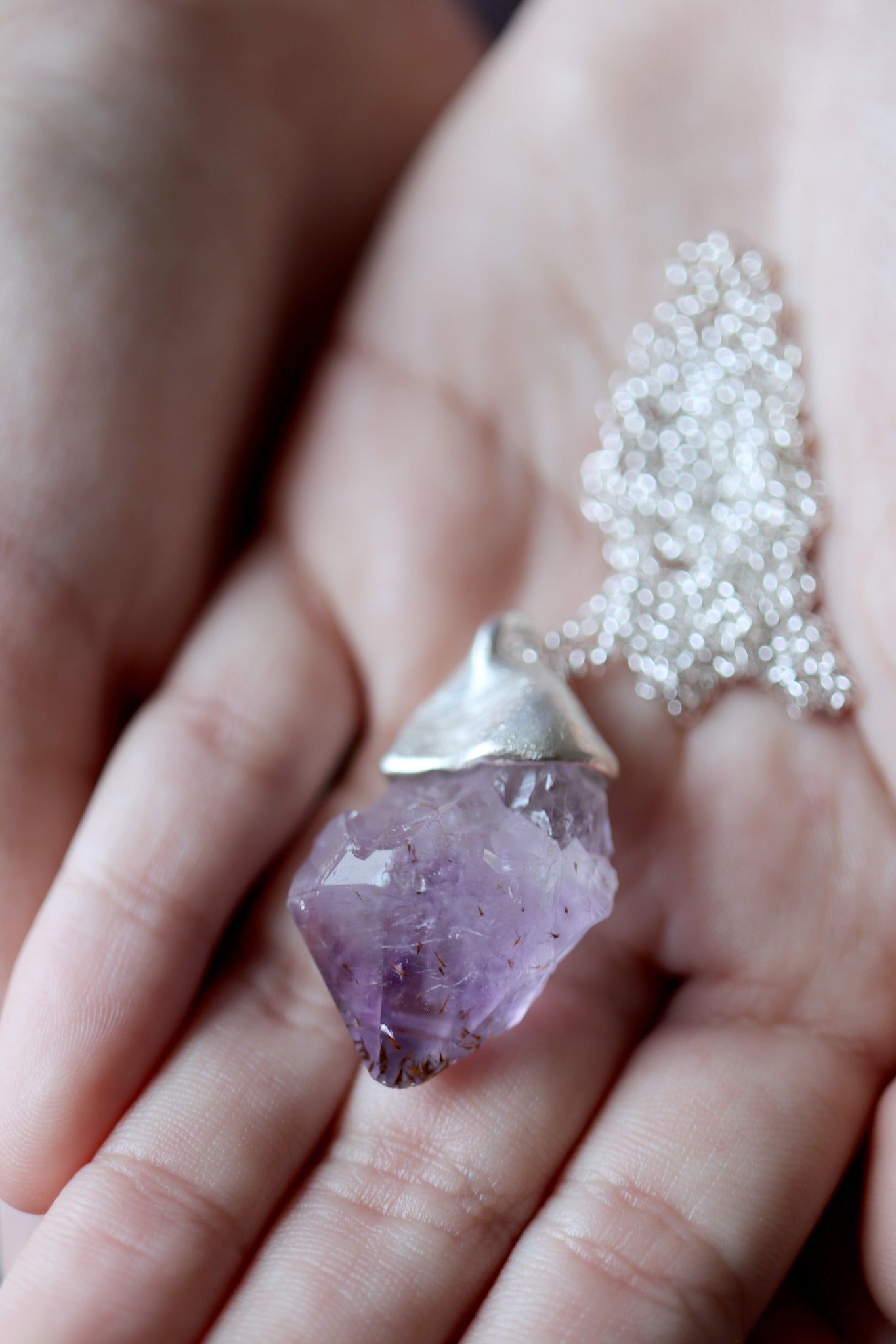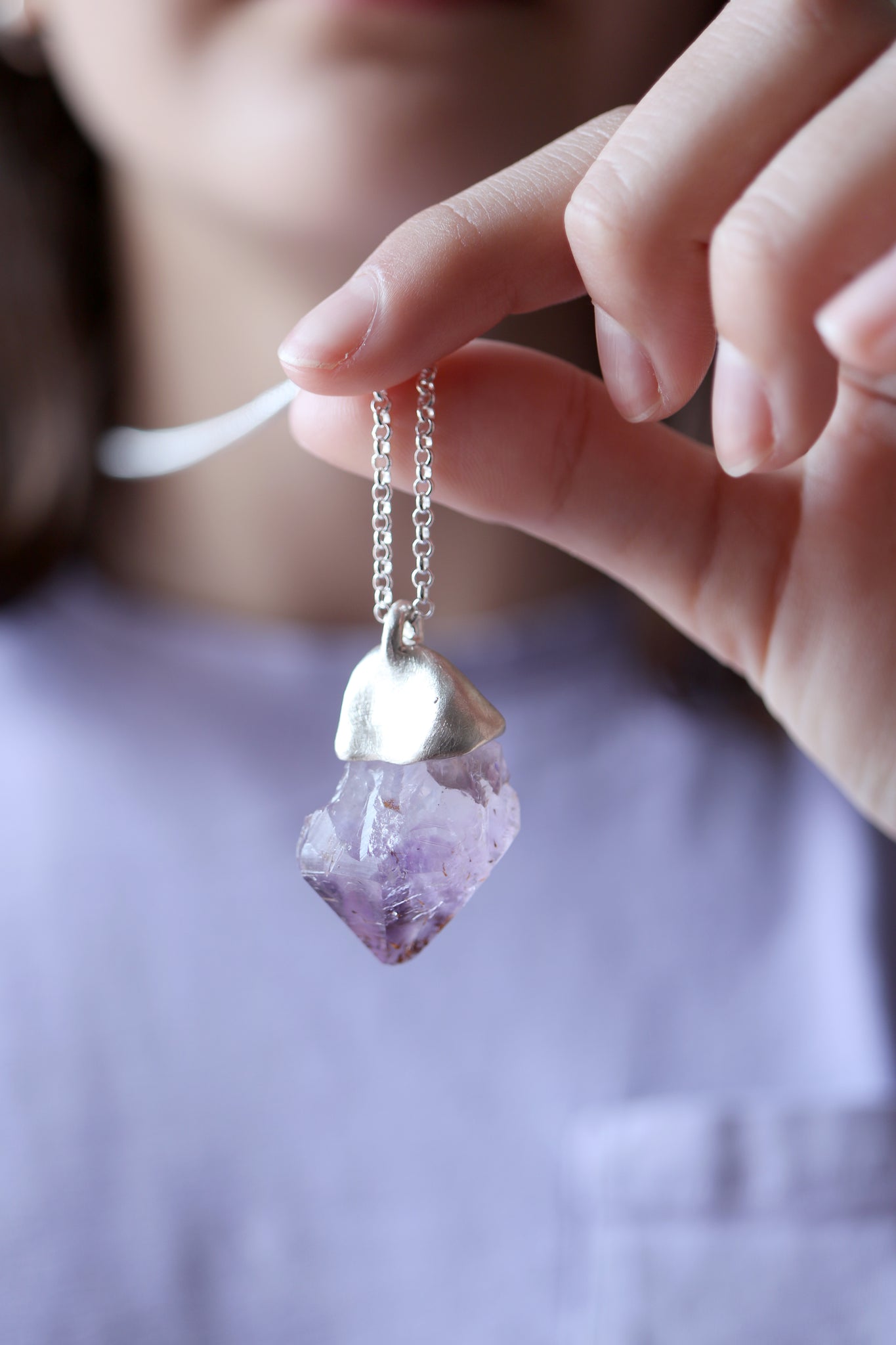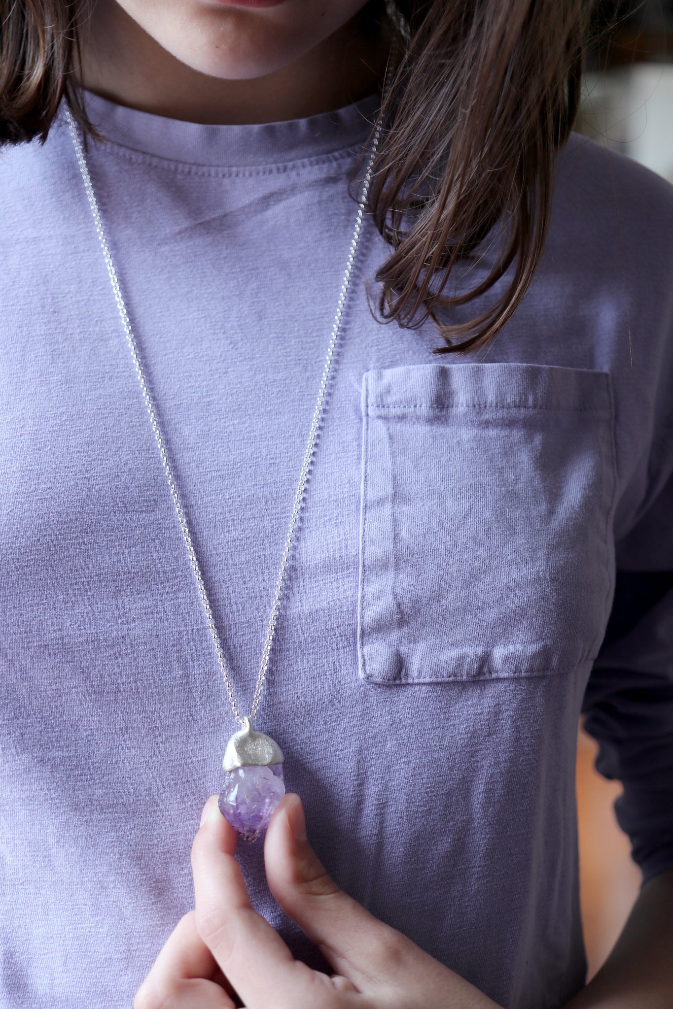 Sterling silver pendant with natural raw Amethyst crystal.