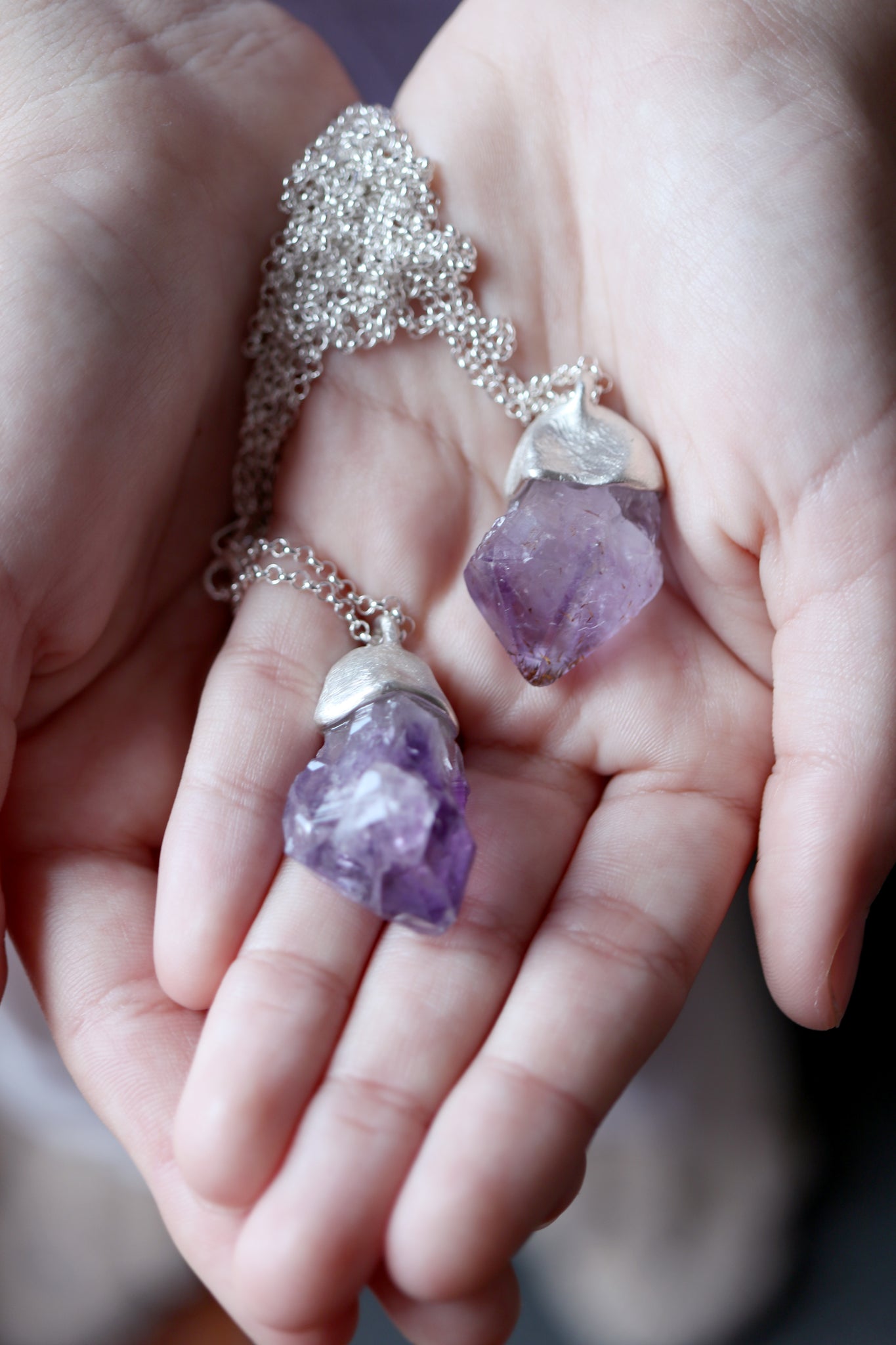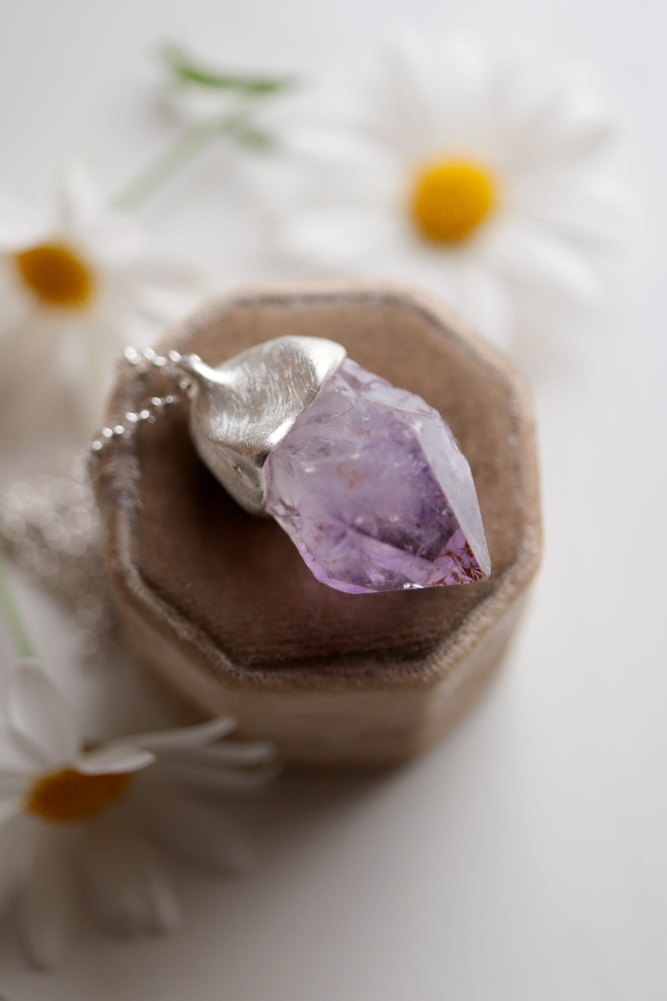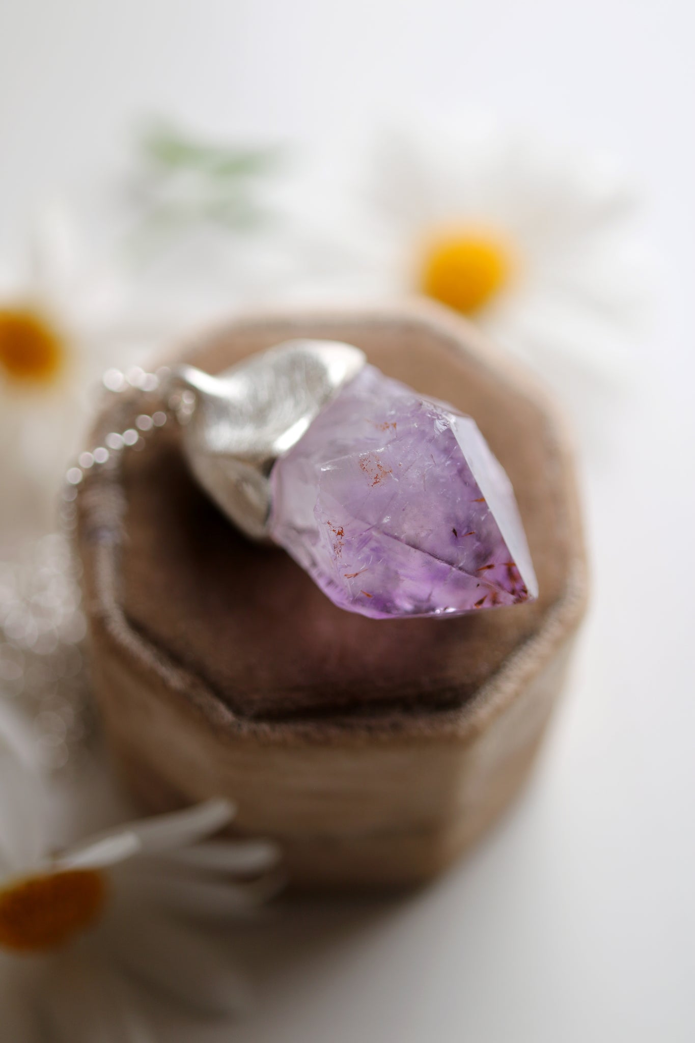 Sterling silver pendant with natural raw Amethyst crystal.