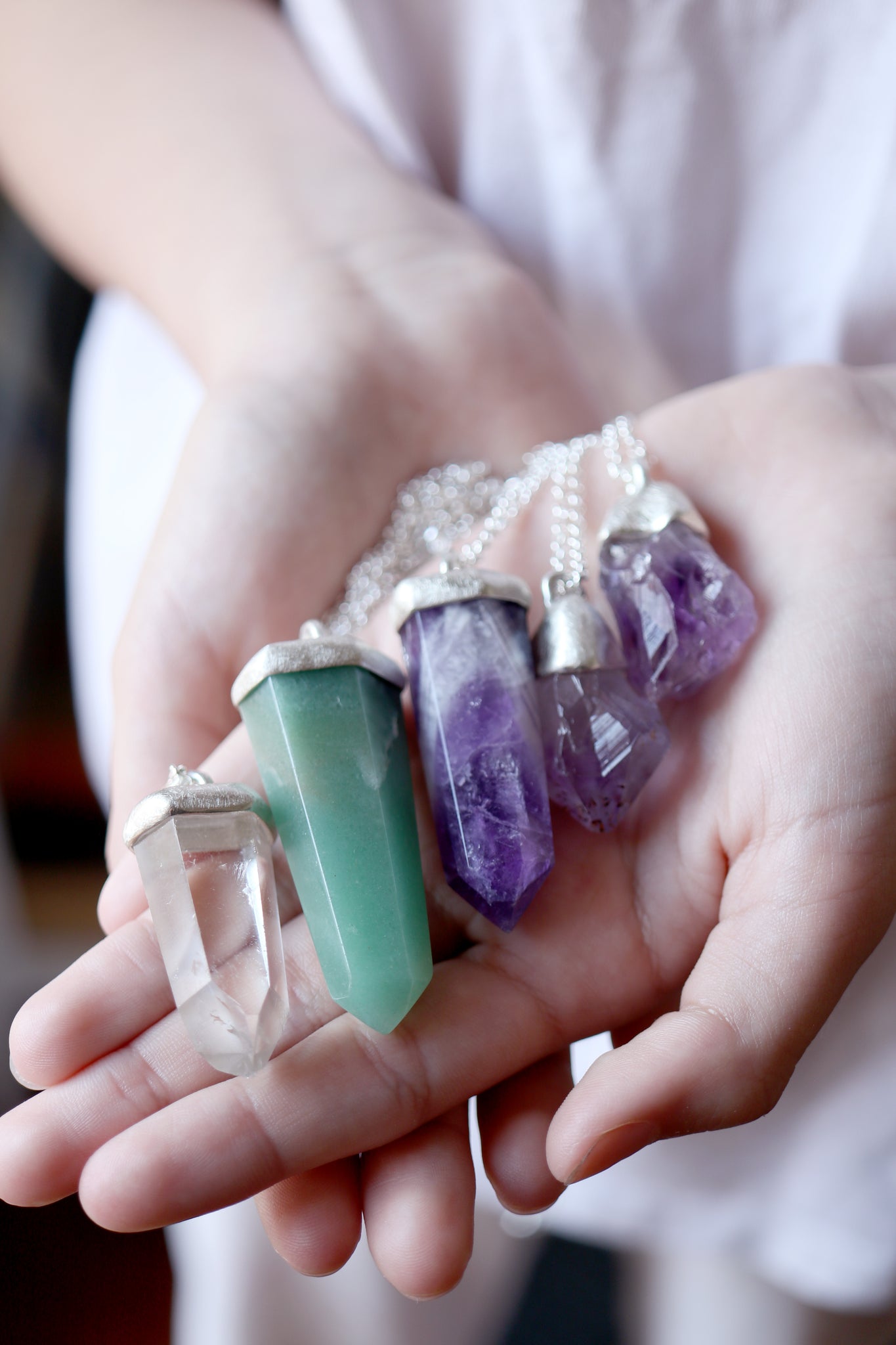 Penjoll de plata amb punta natural de cristall d'Ametista.