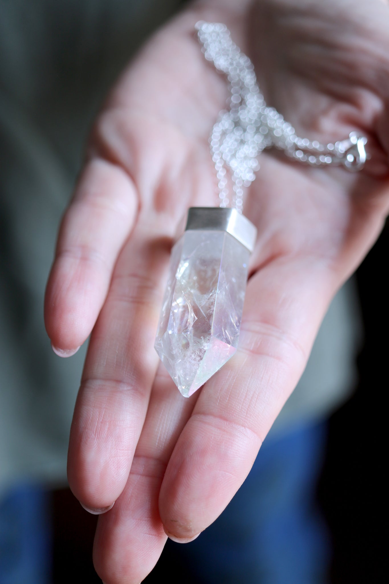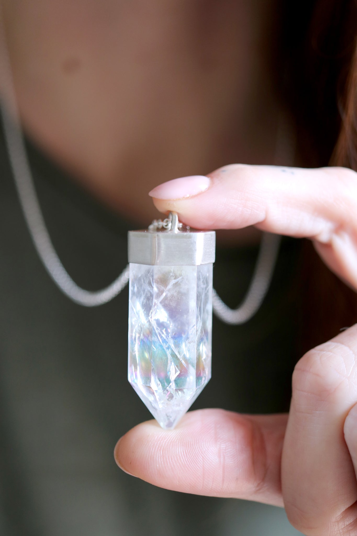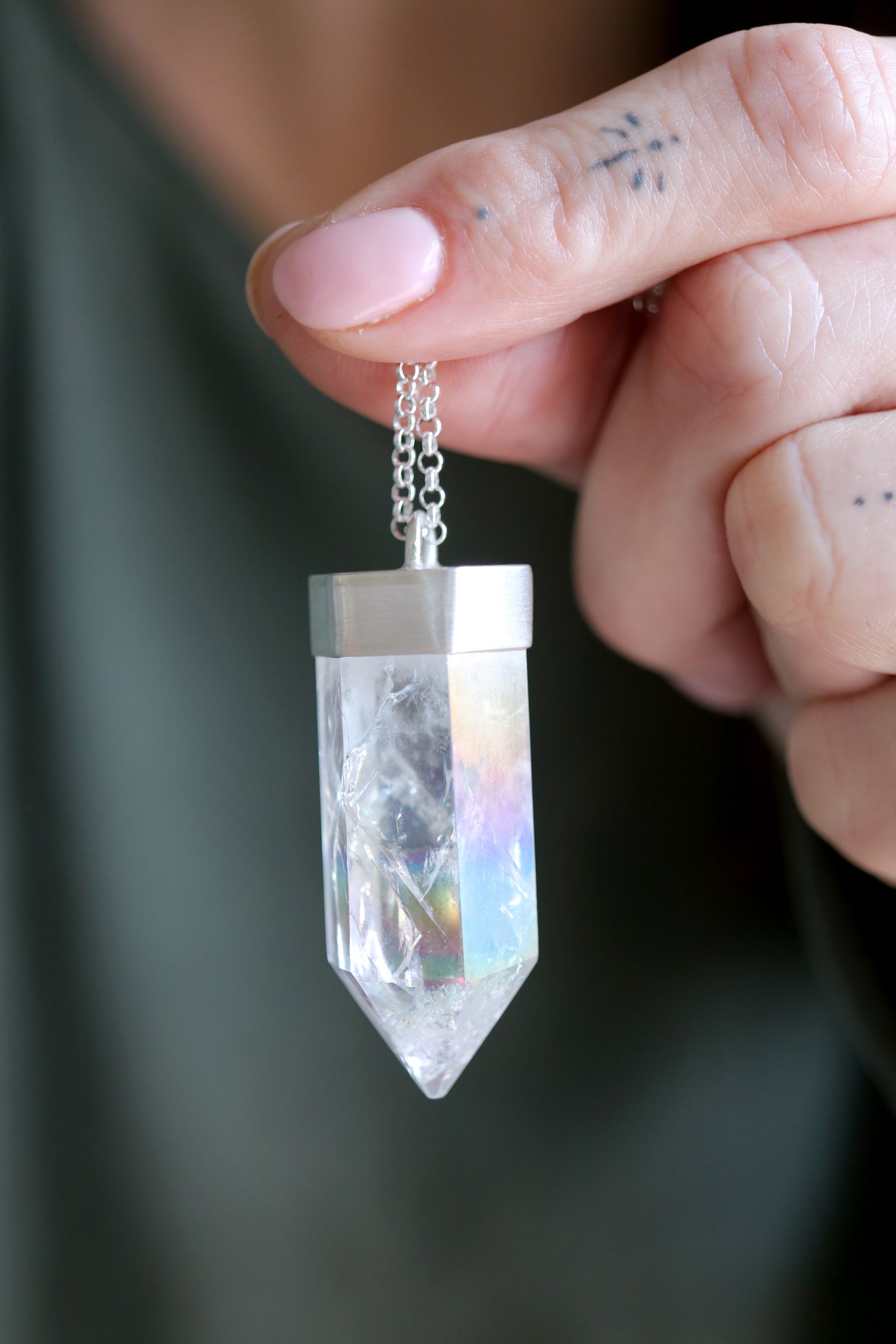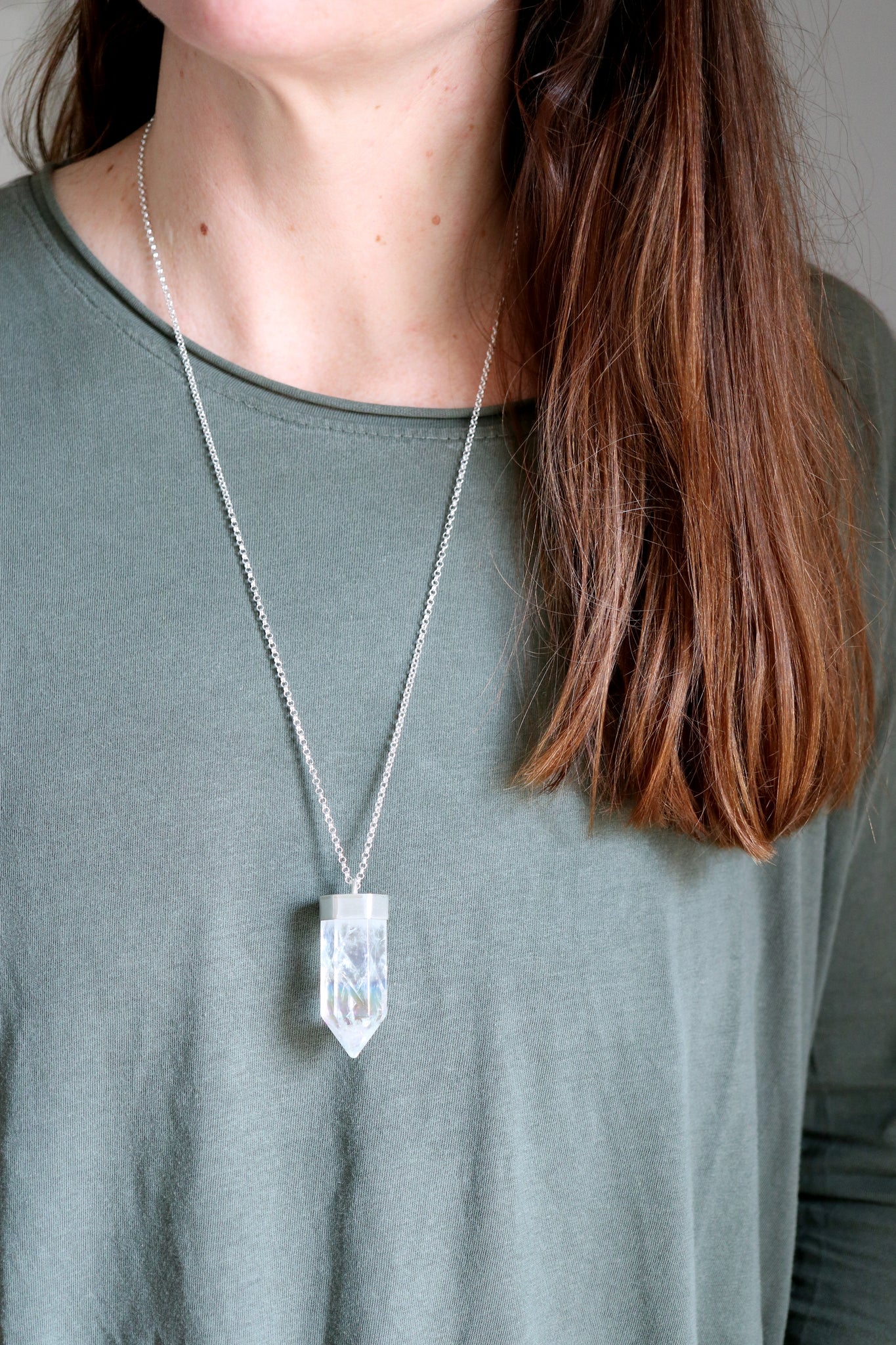 Sterling silver pendant with Quars Aura Angel crystal