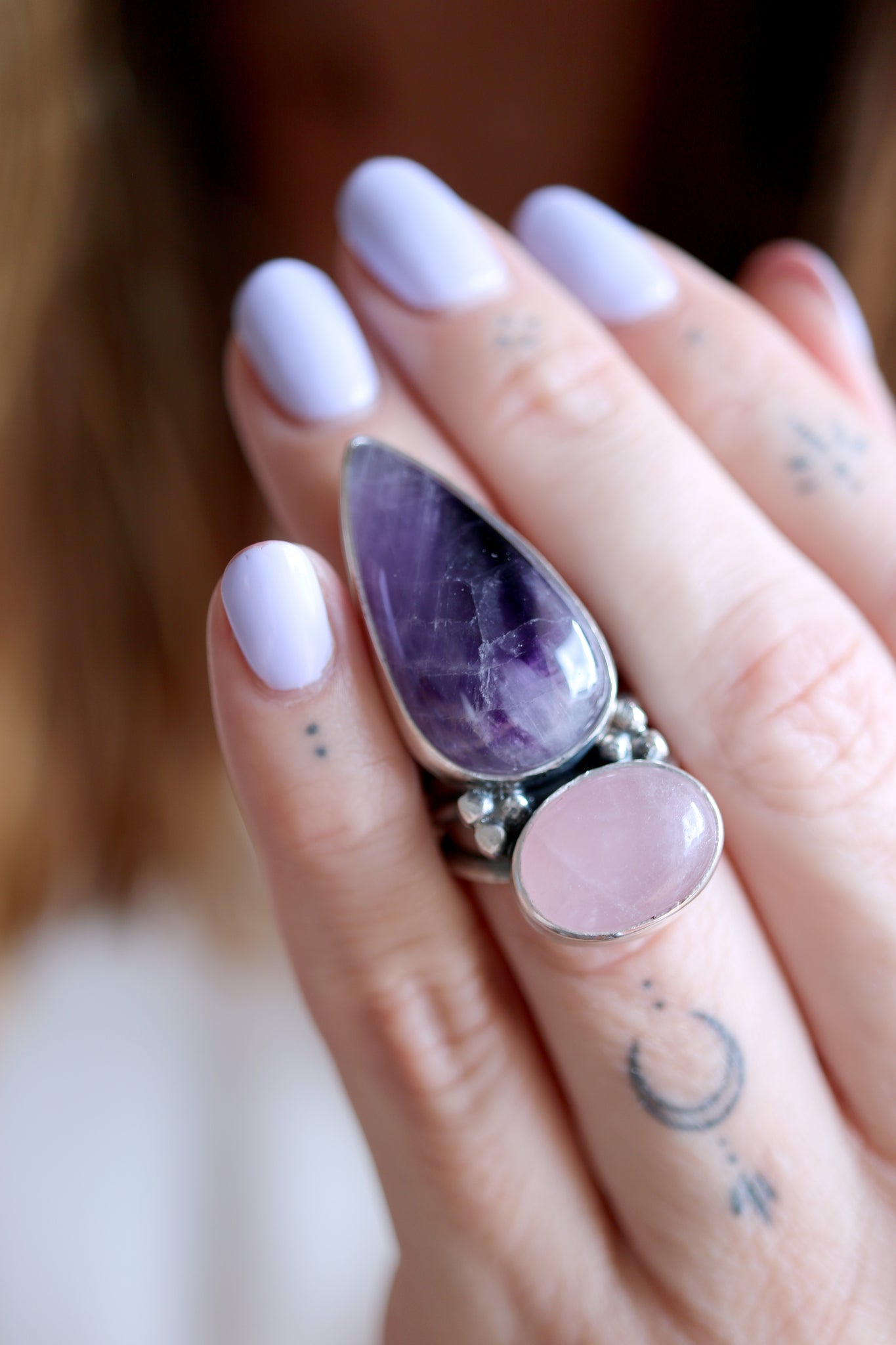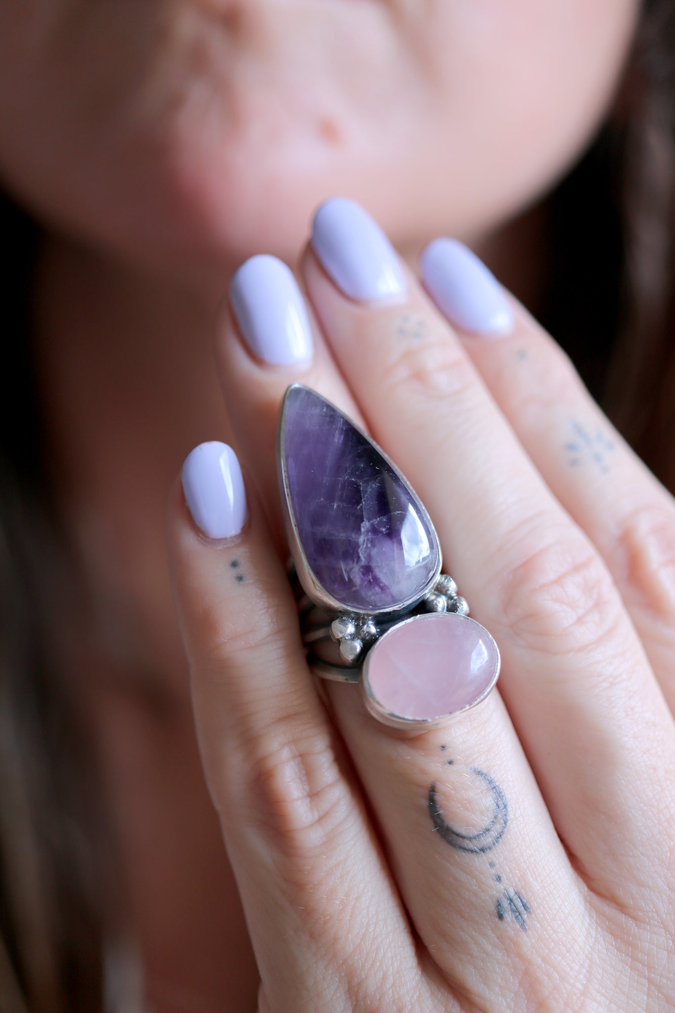 Anell doble de plata amb Quars Rosa i Ametista.