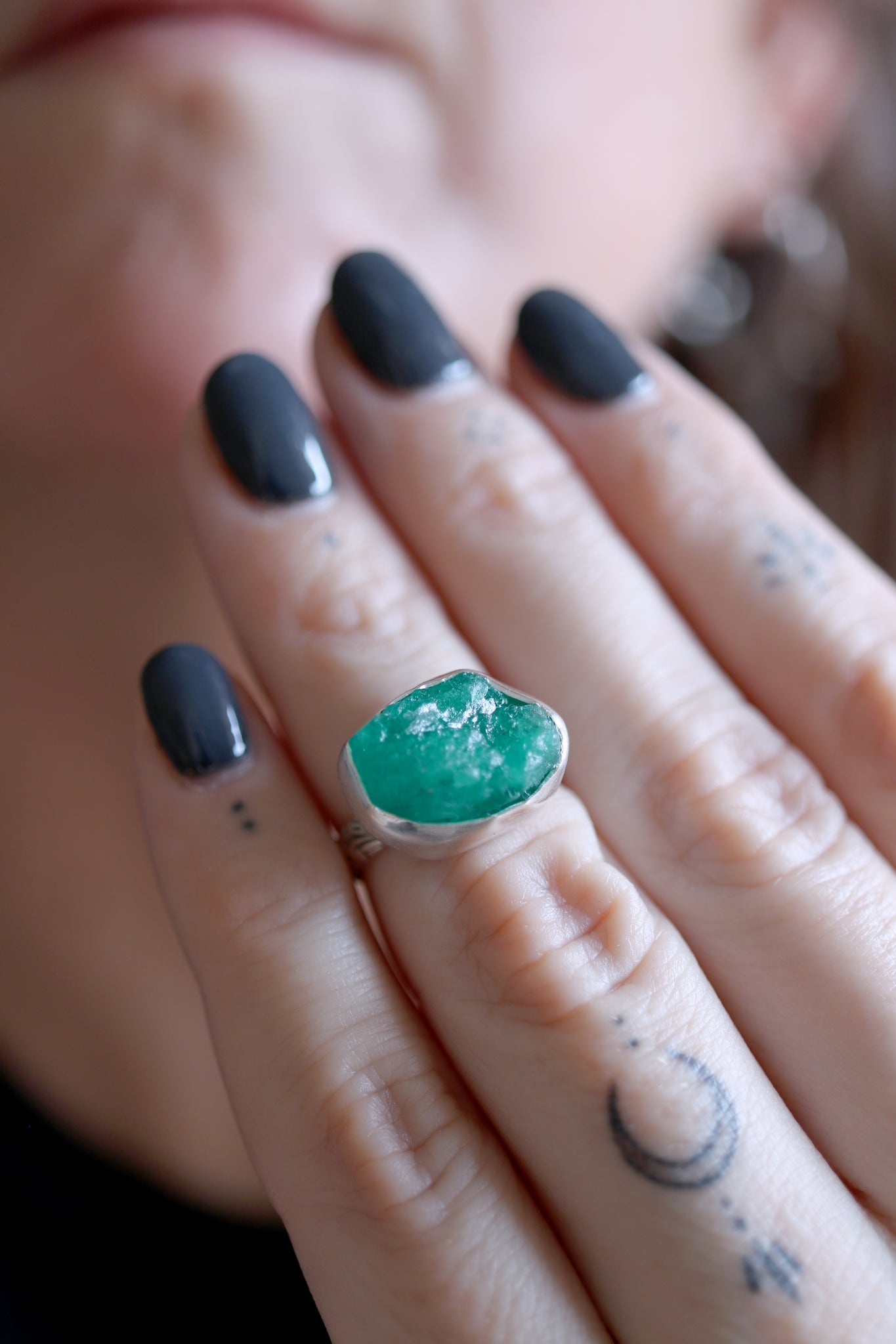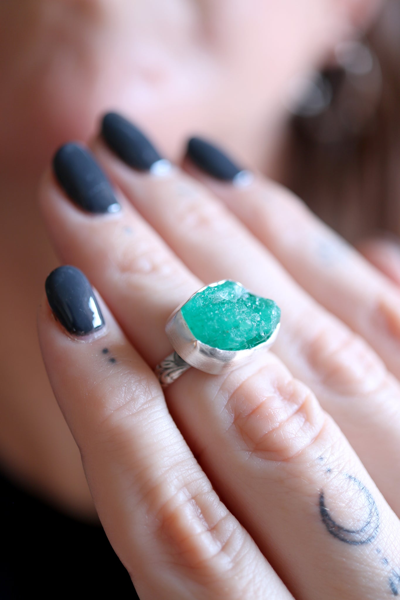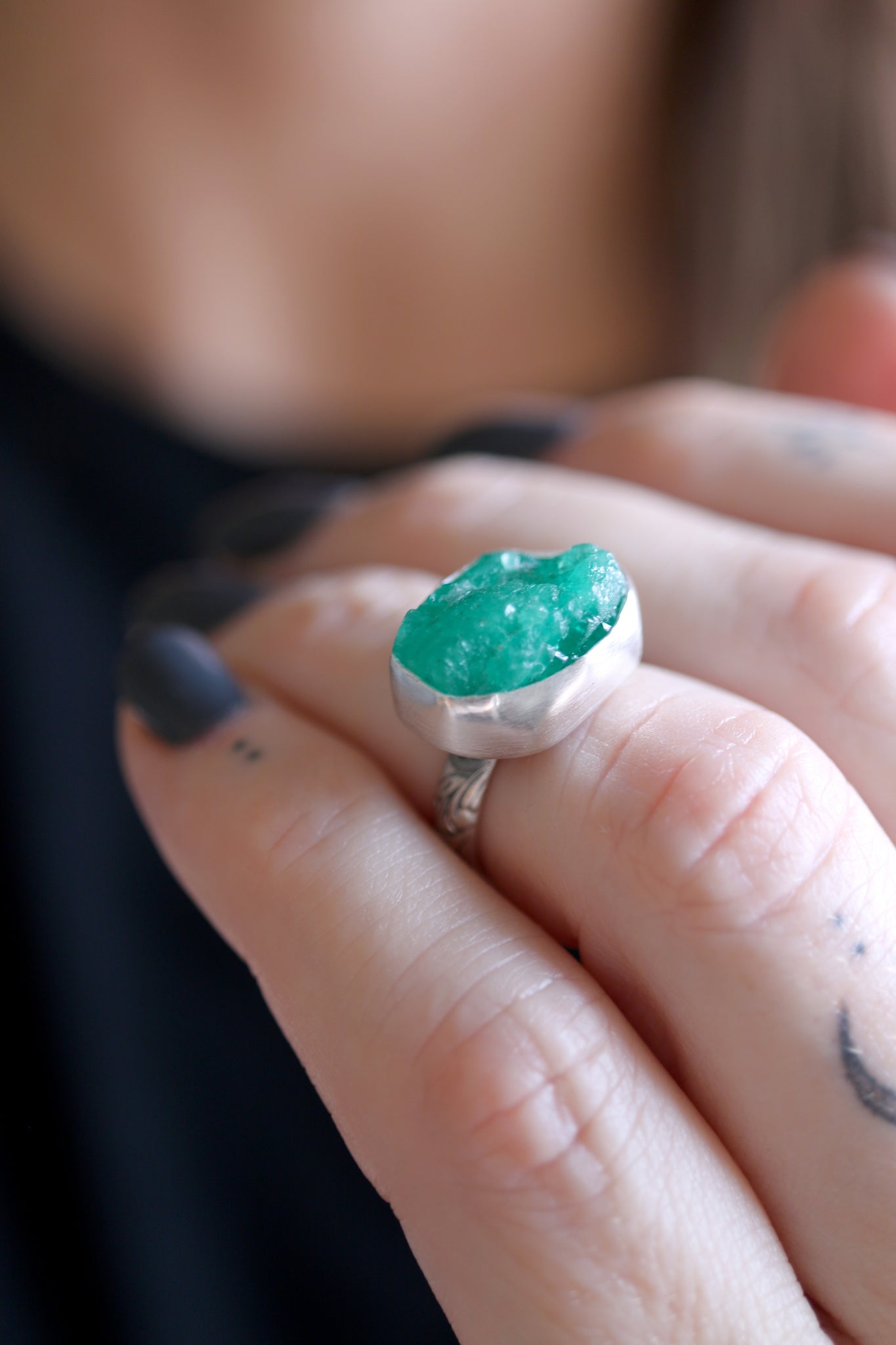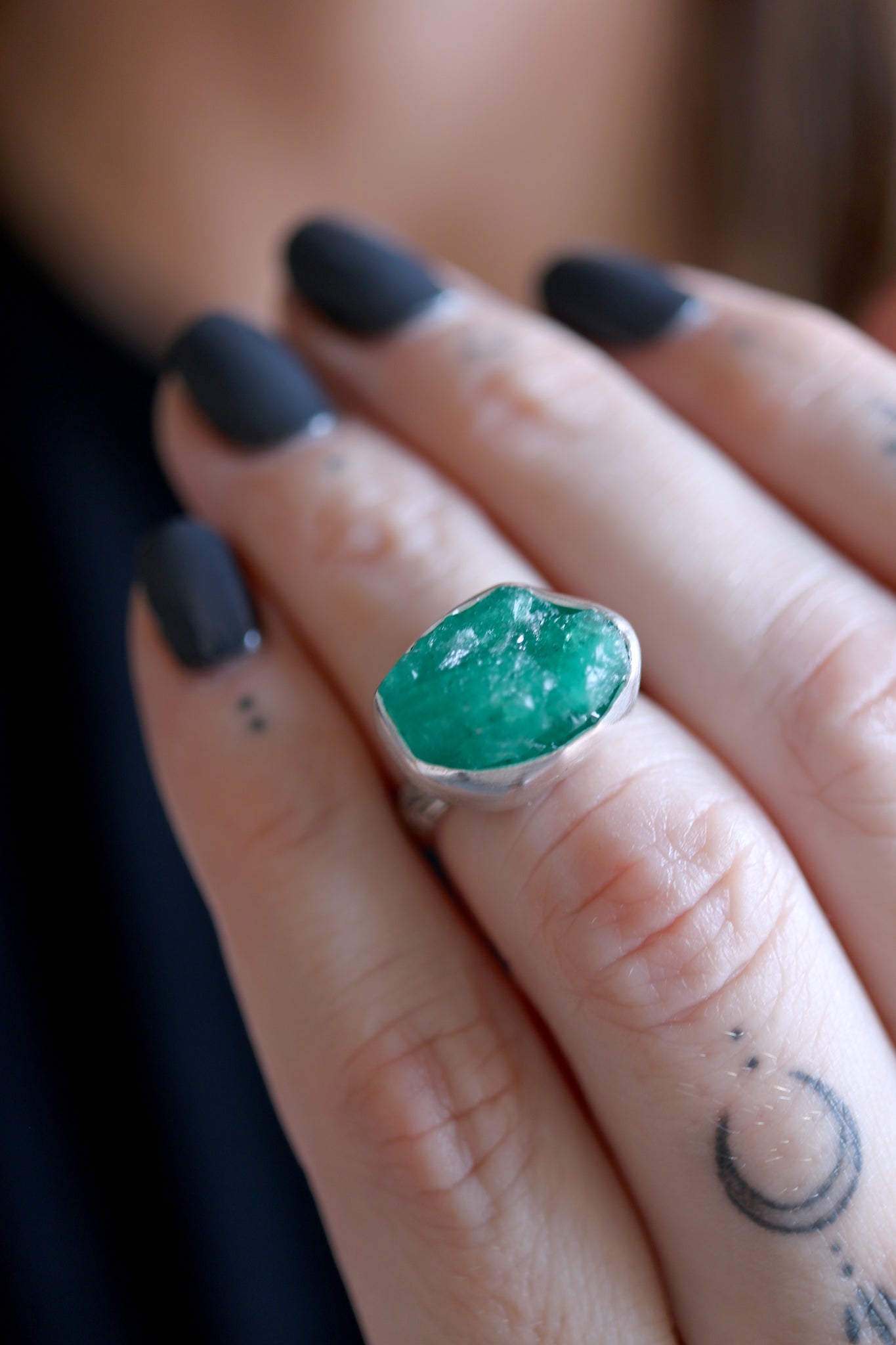Sterling silver ring with natural raw Emerald.