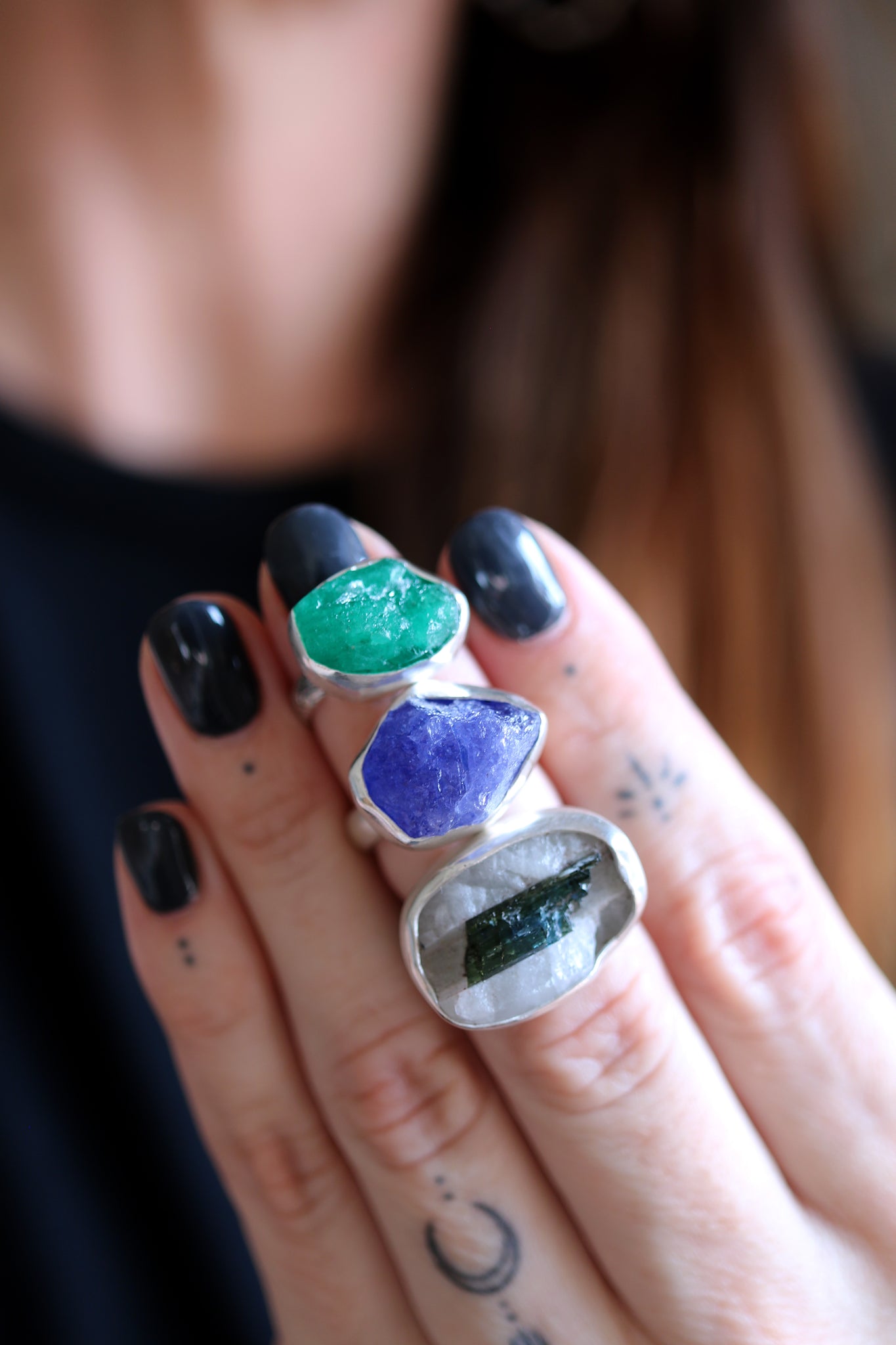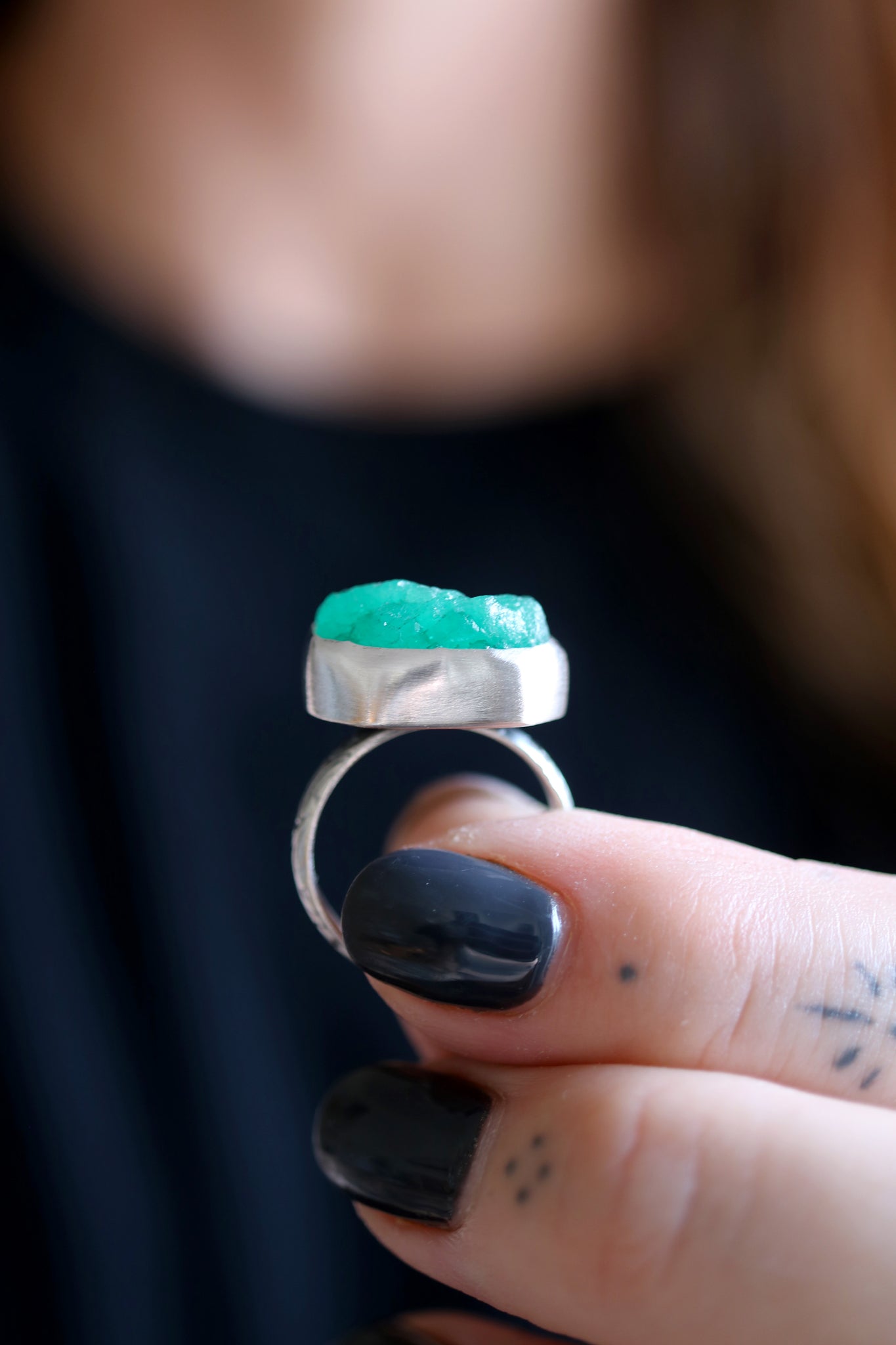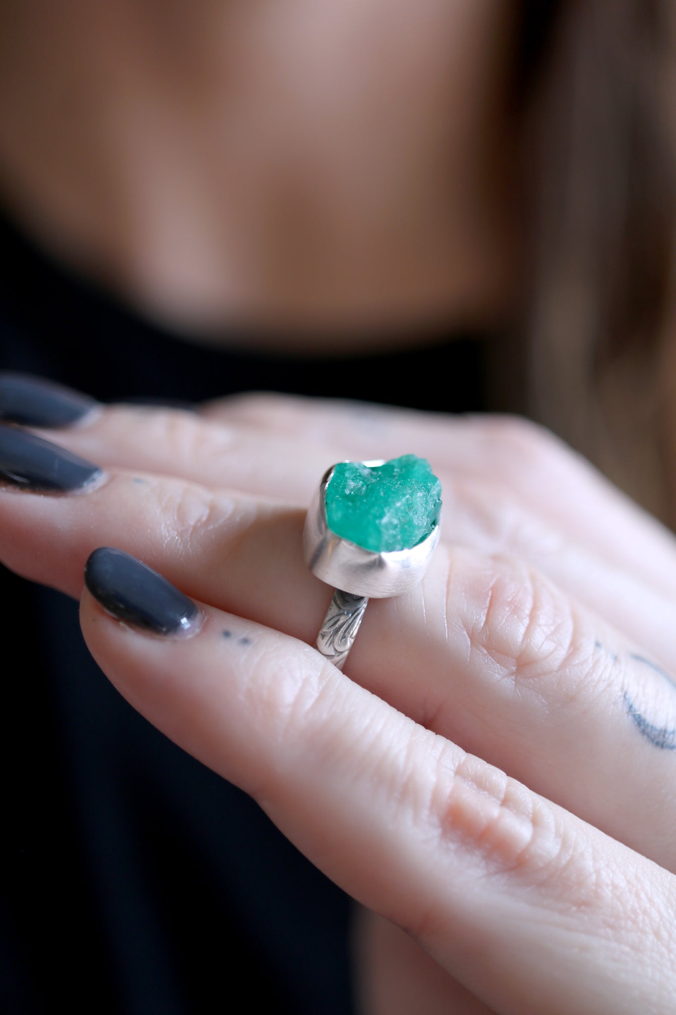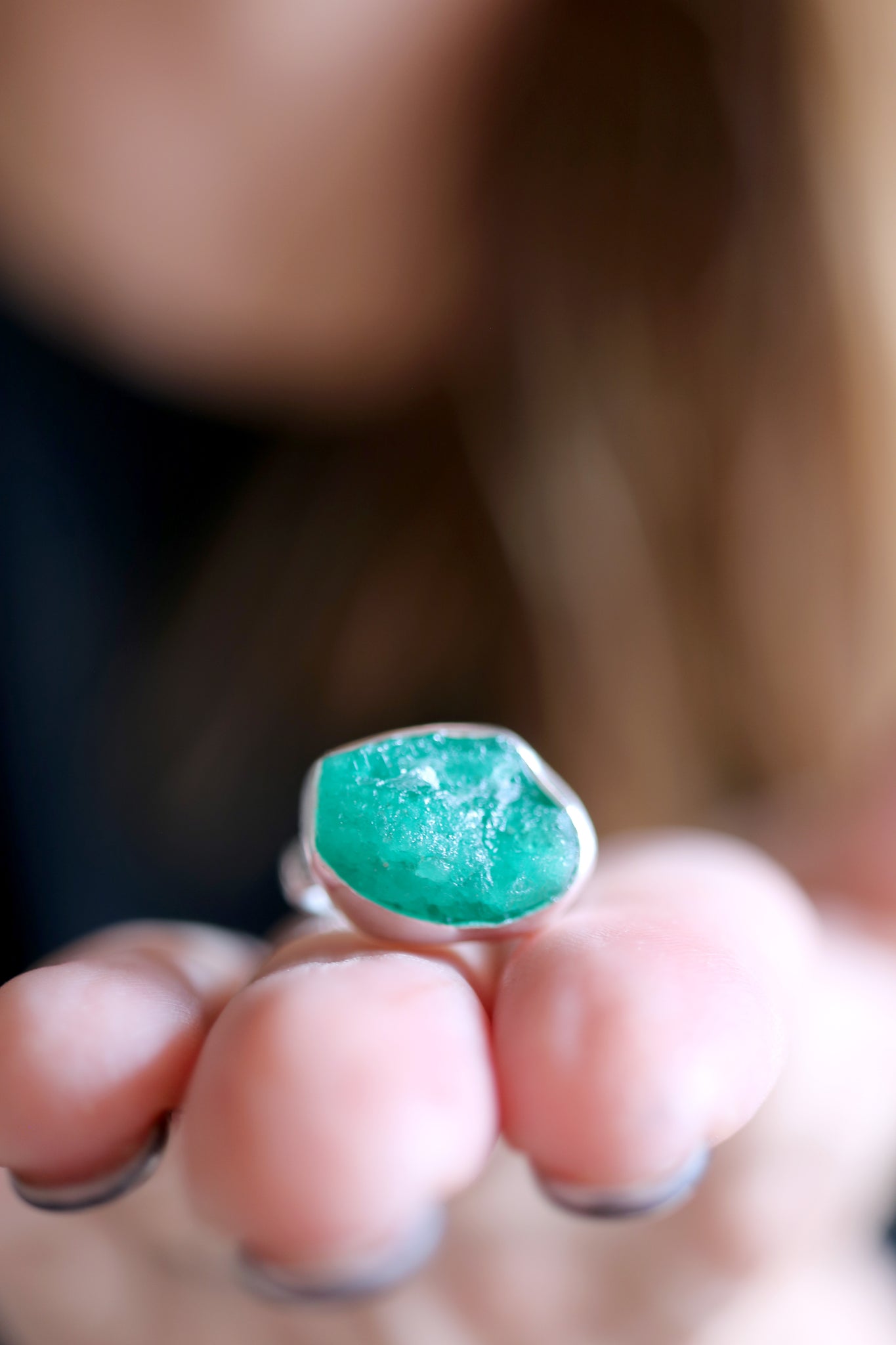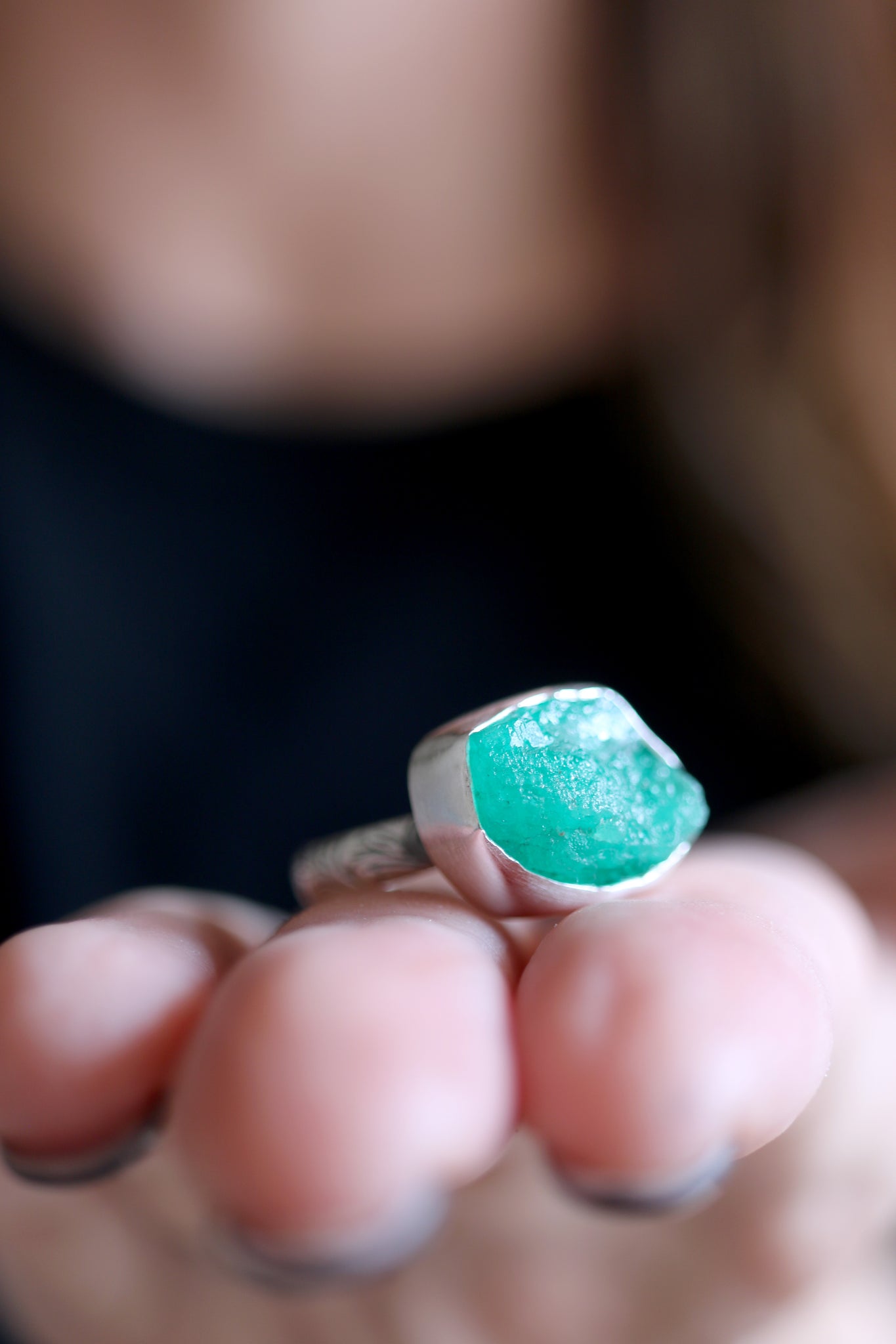 Sterling silver ring with natural raw Emerald.