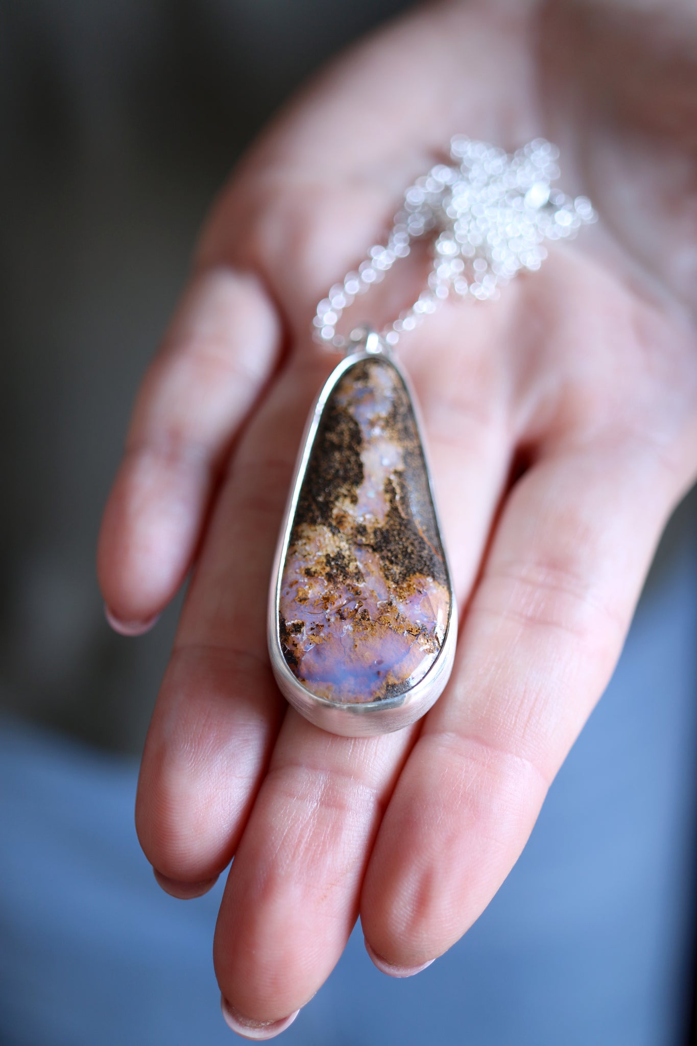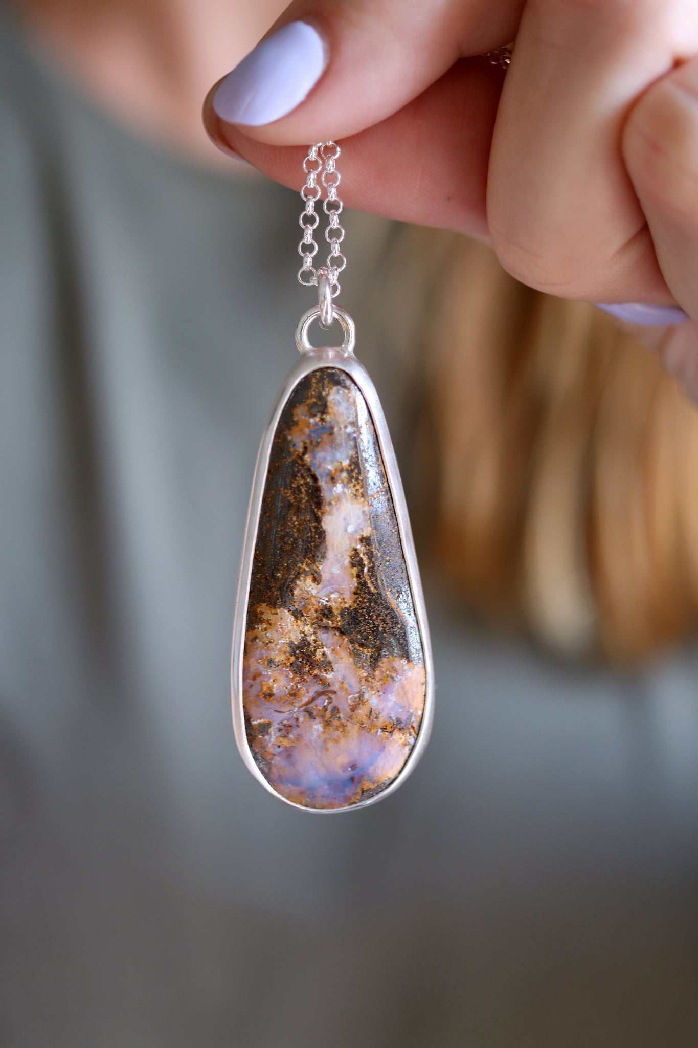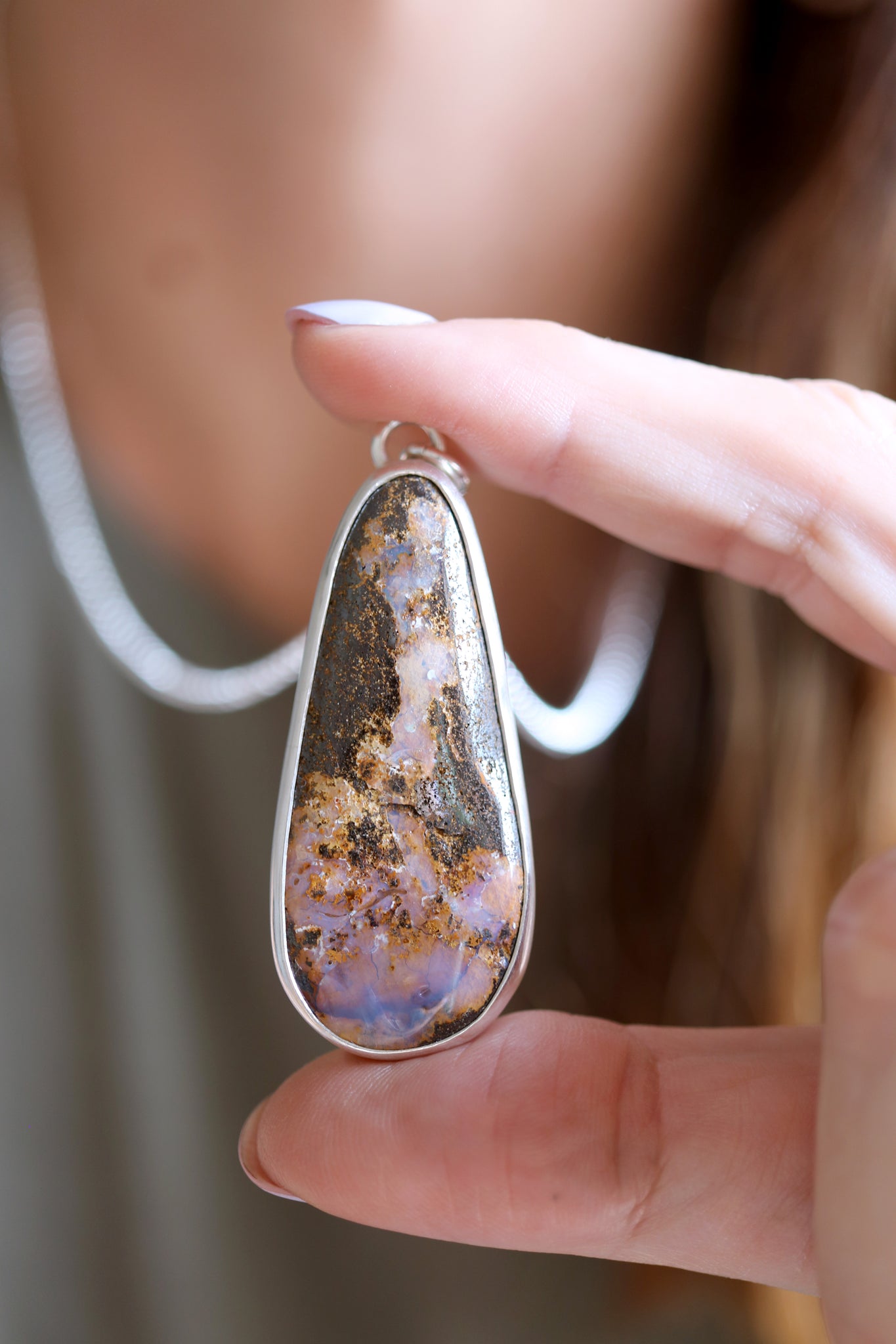 Sterling silver necklace with natural Boulder Opal.