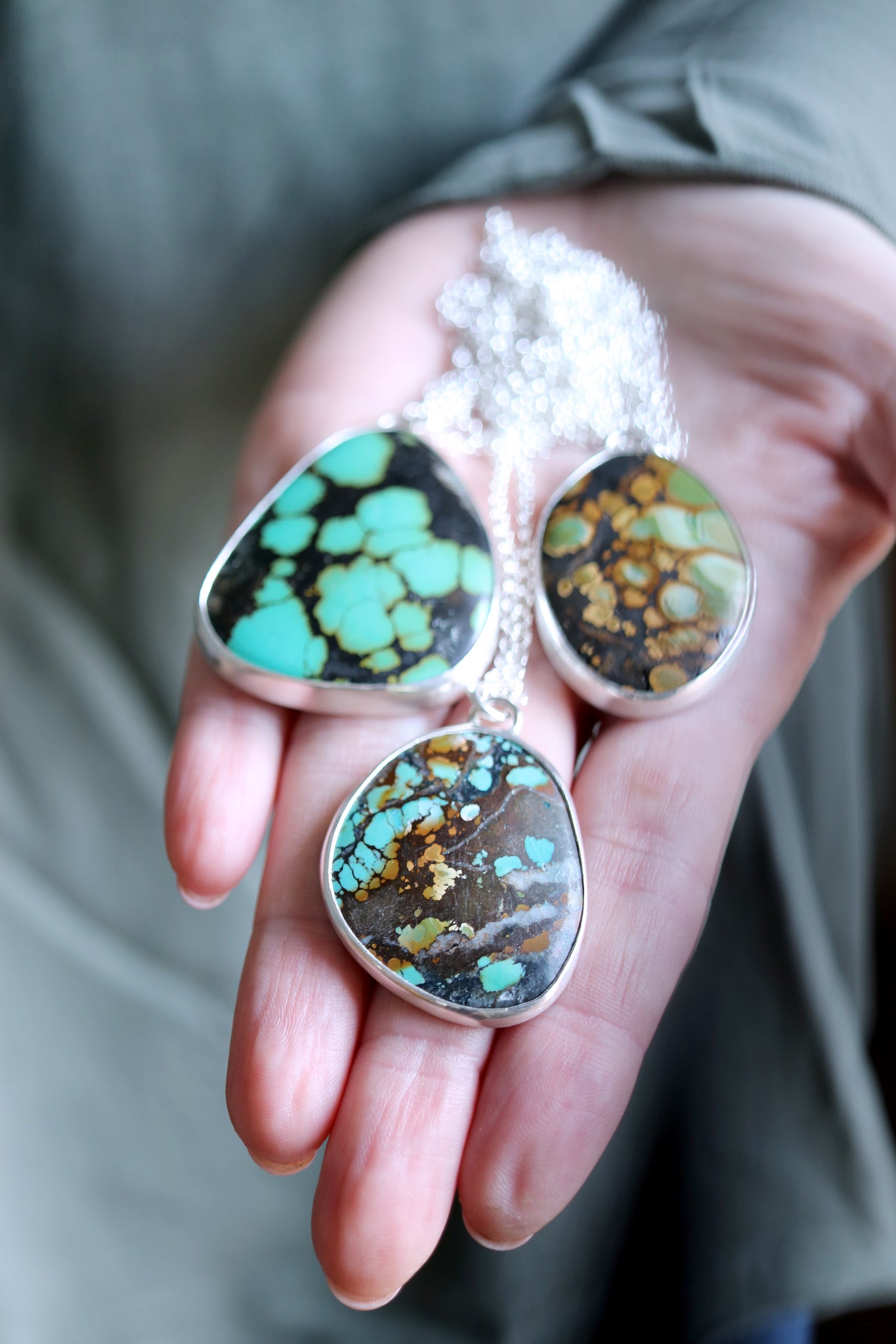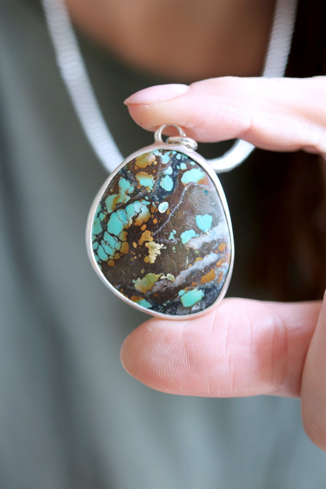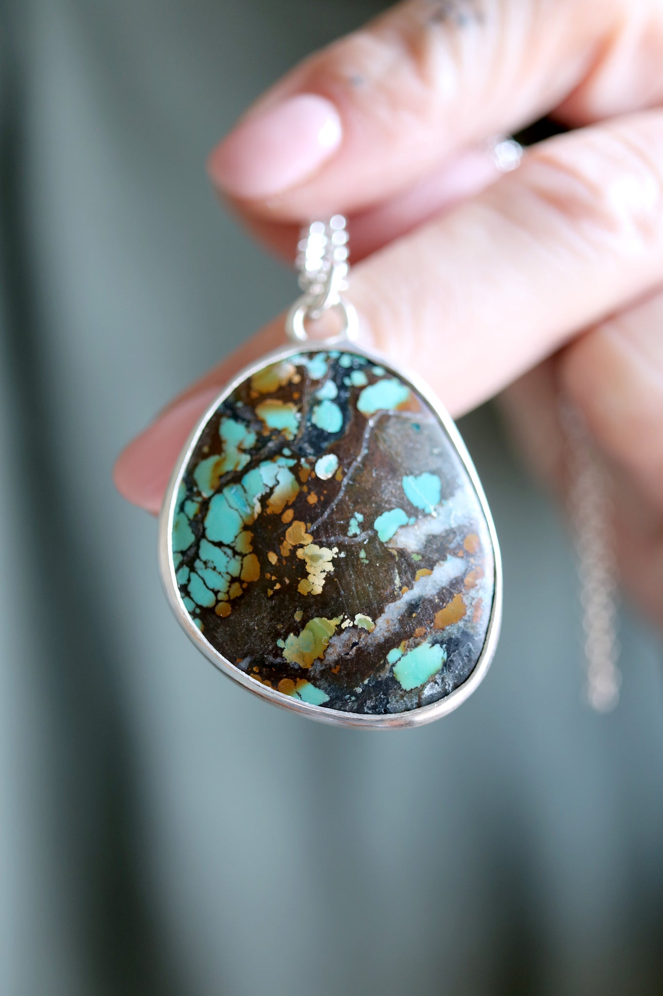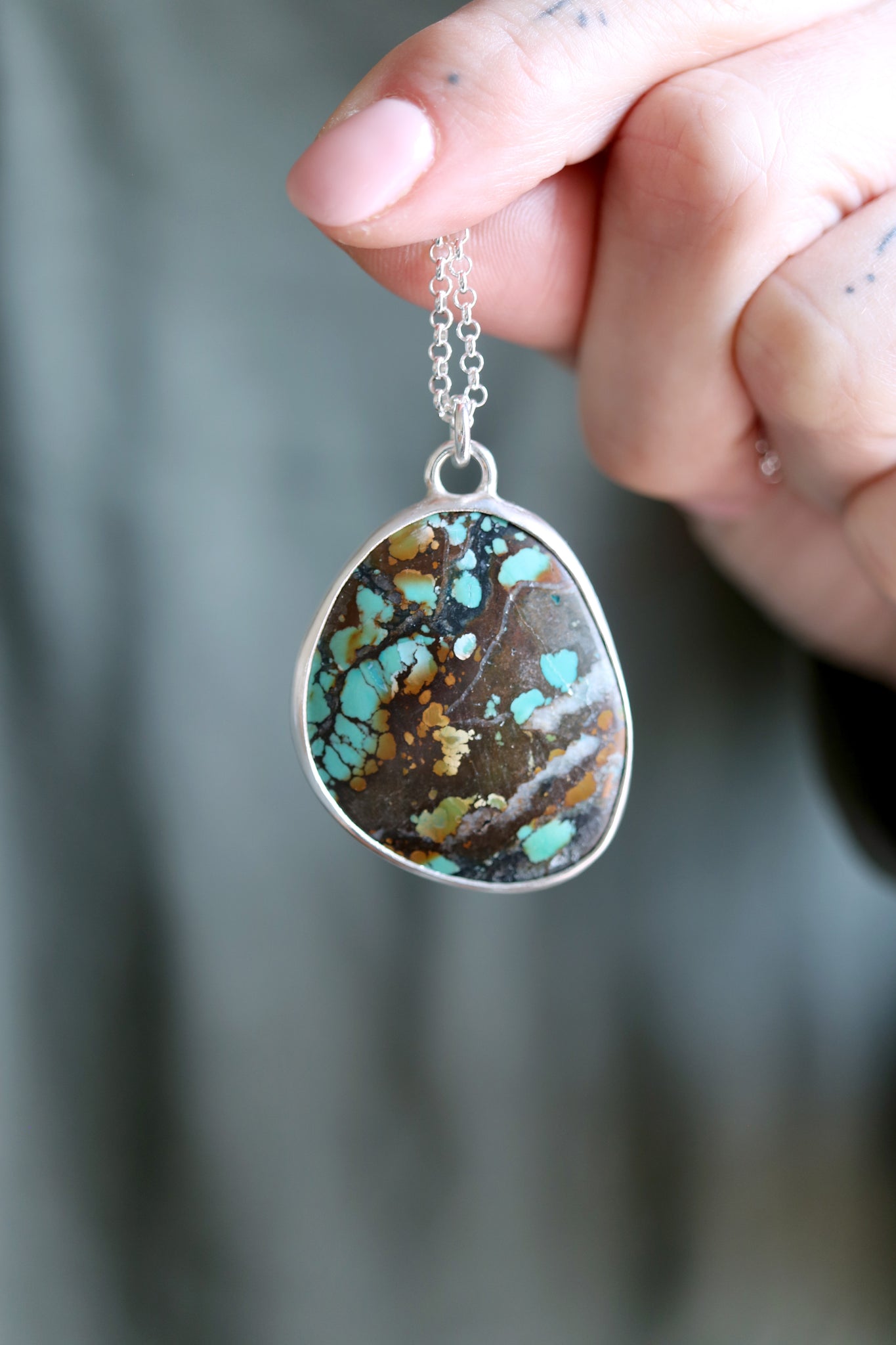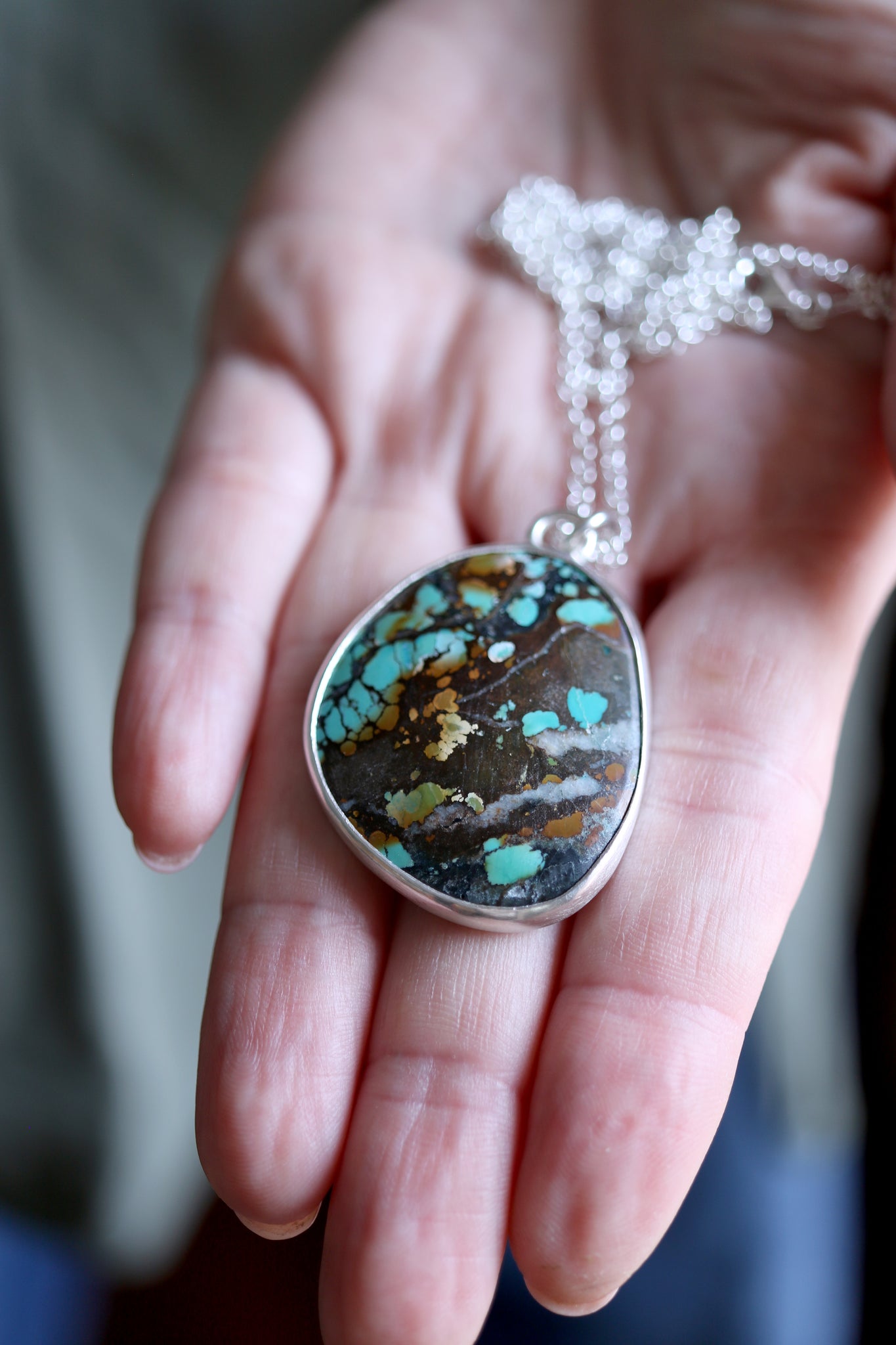 Sterling silver necklace with natural Turquoise.