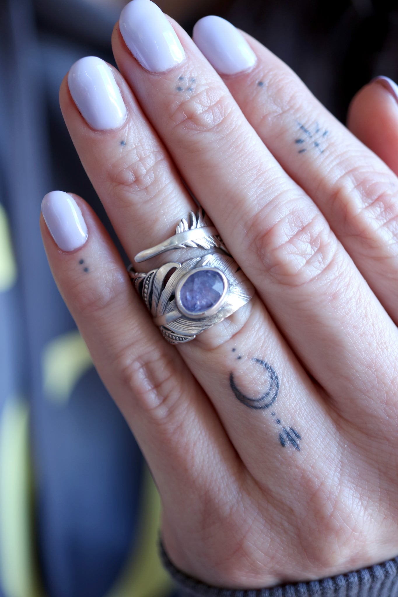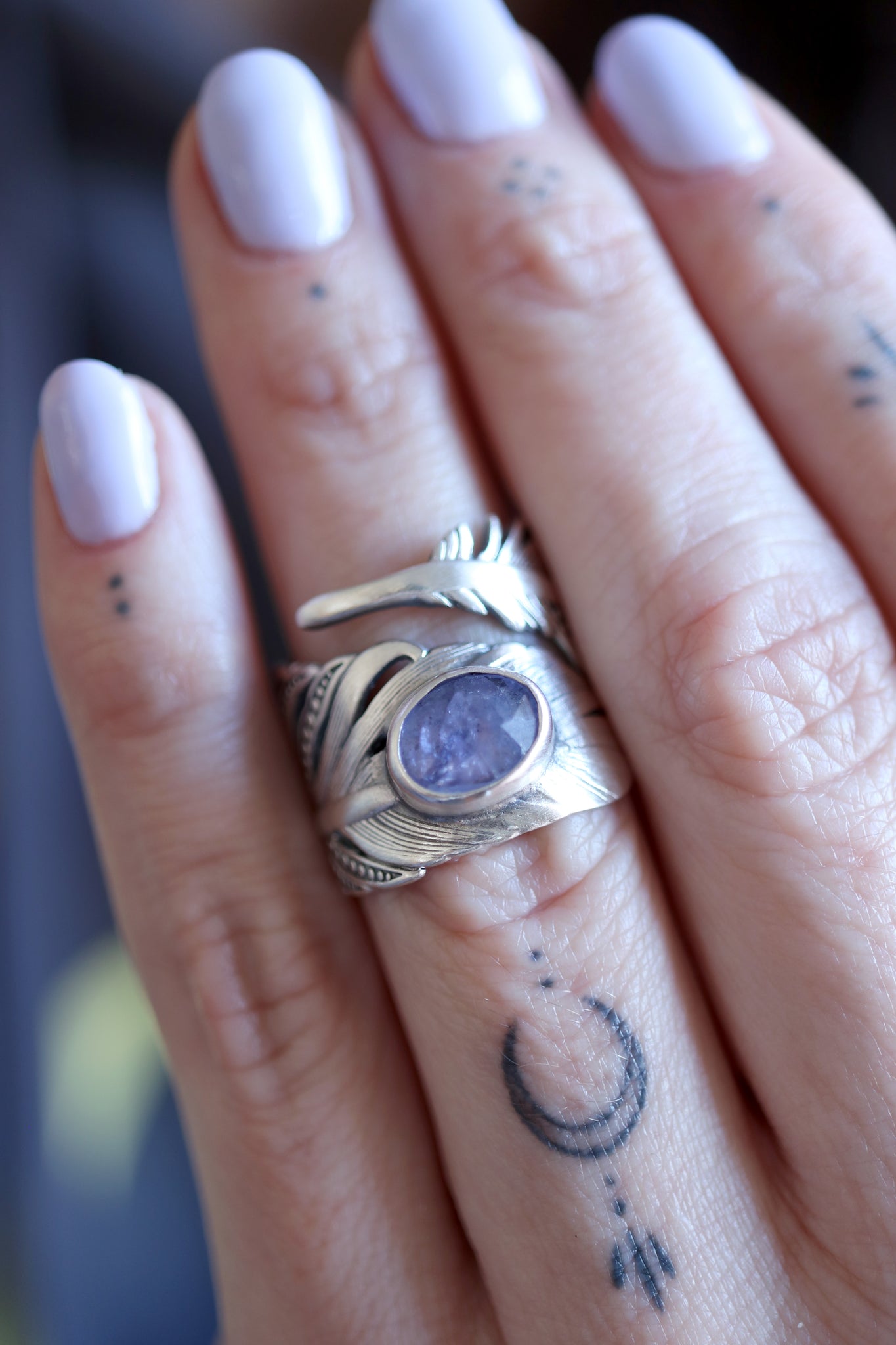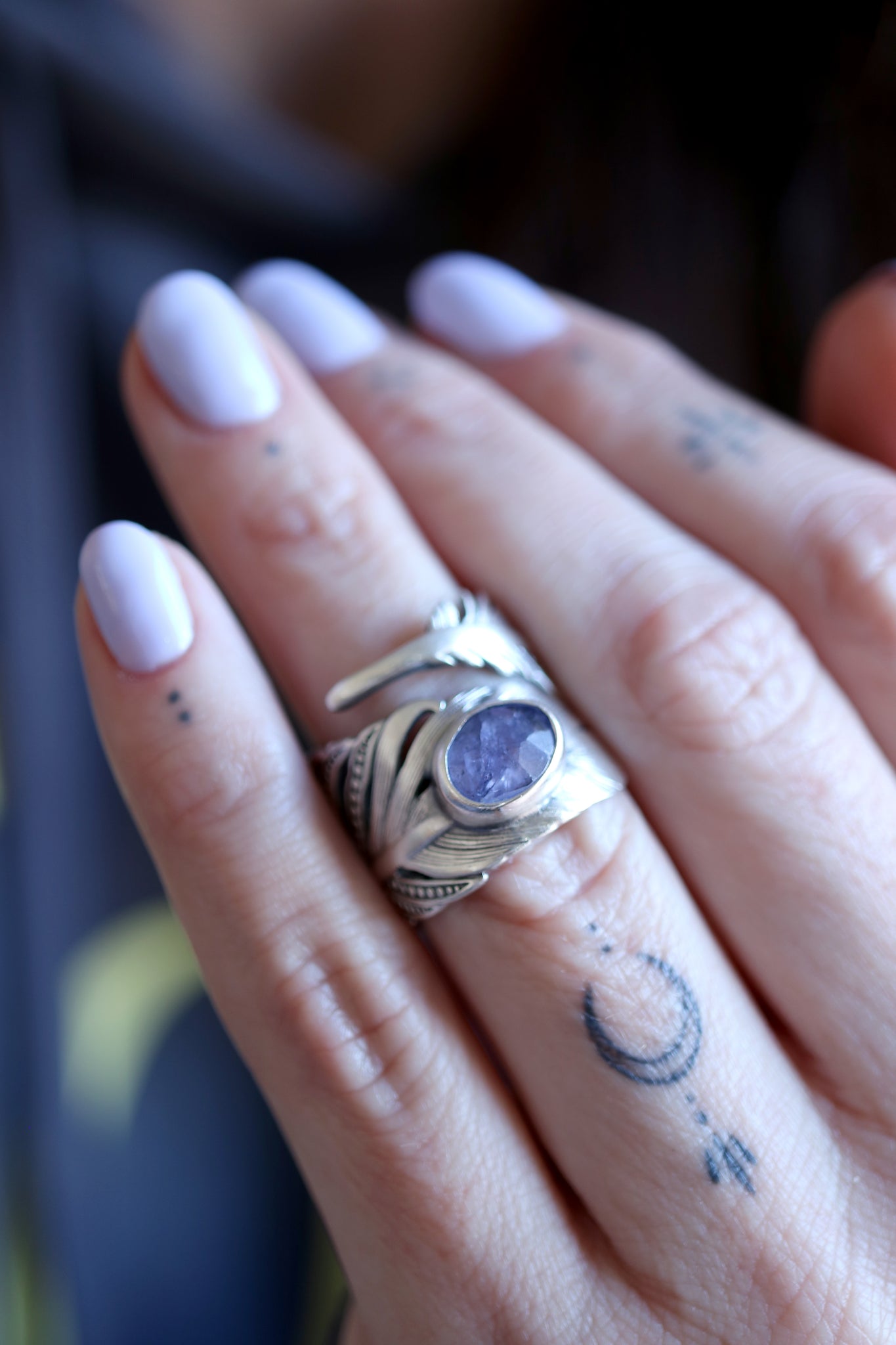 Anell de ploma de plata amb Tanzanita natural facetada.
