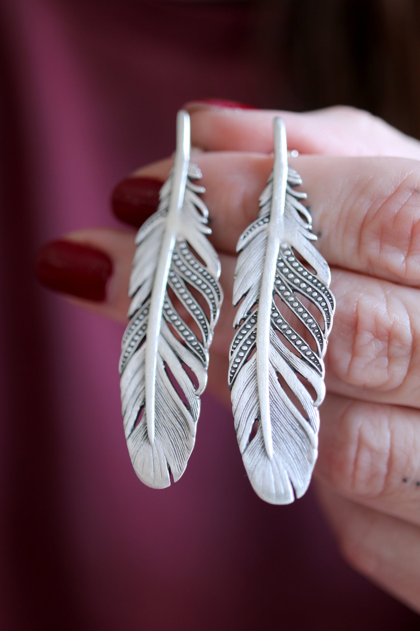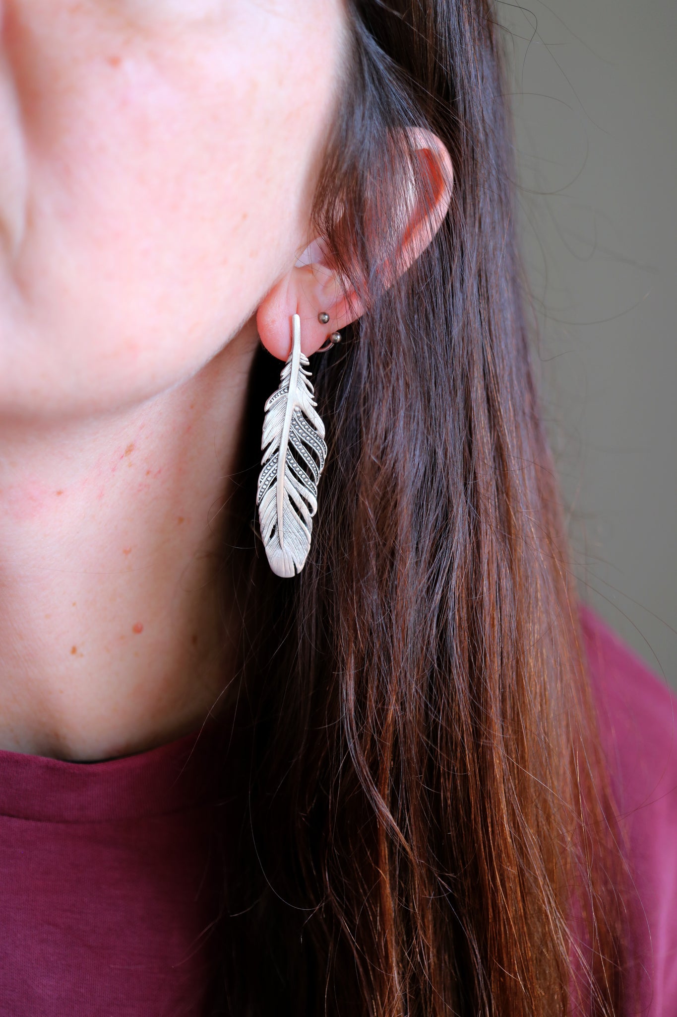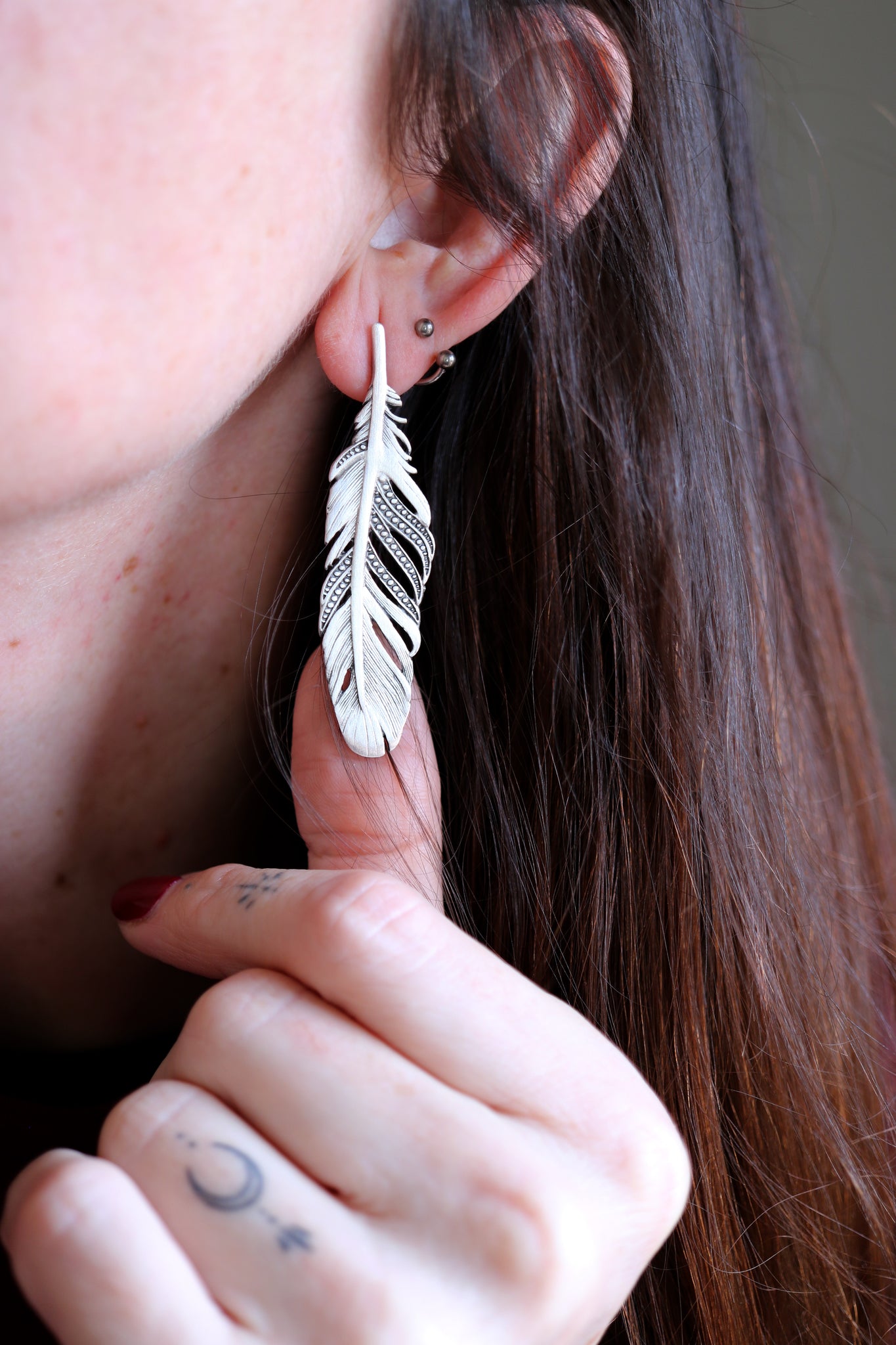 From Plomes collection.This pieces are a one-of-a-kind handmade earrings.Size: 64 x 15mm.