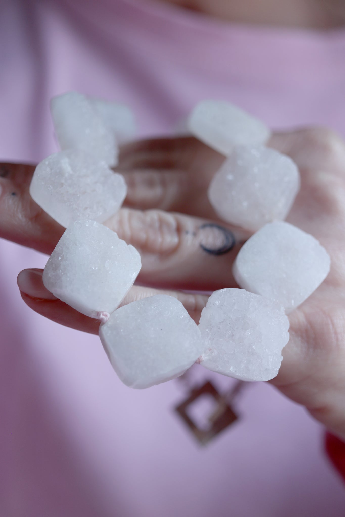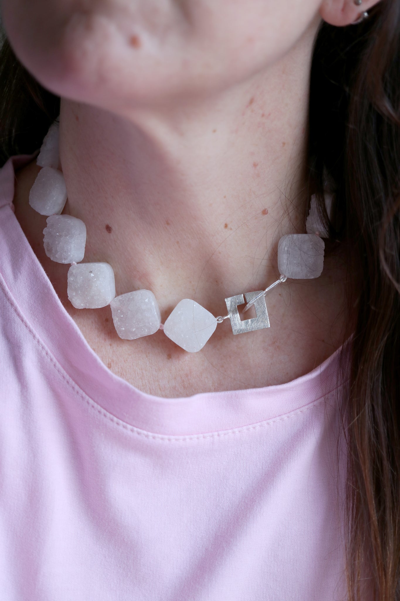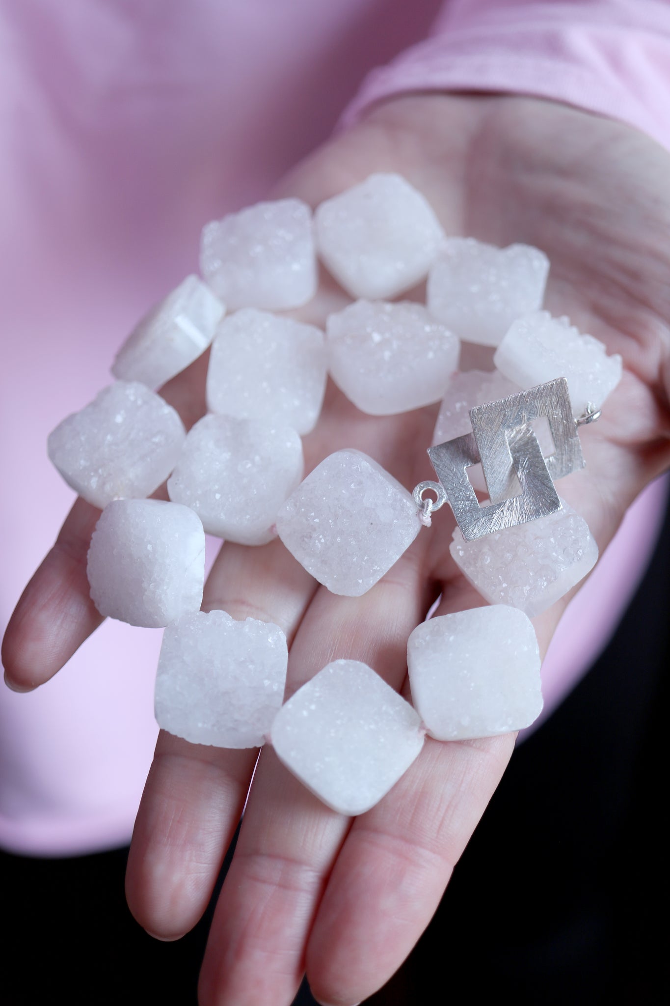 The stones have square shape with natural druzy surface, this make them shine with light.