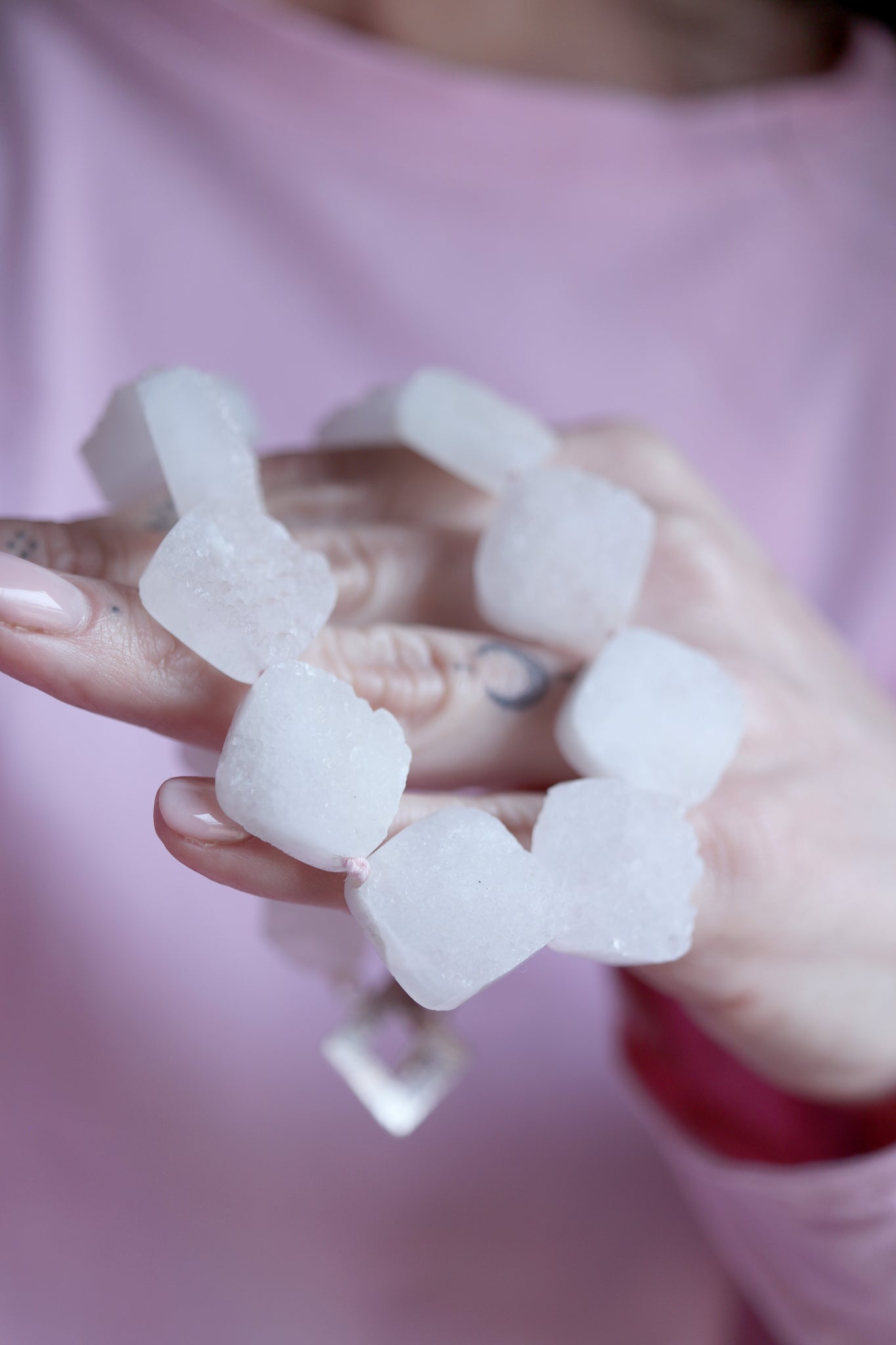Les pedres de Quars són de forma quadrada i amb la superfície cristal·litzada en brut, això fa que amb la llum brillin els mini cristallets.
