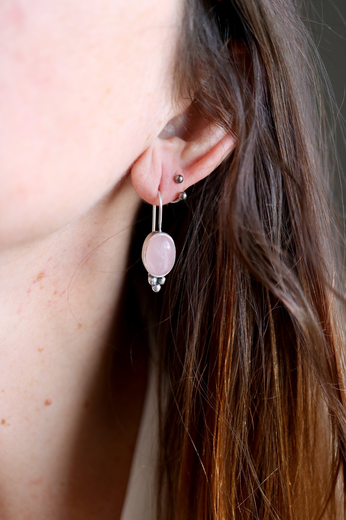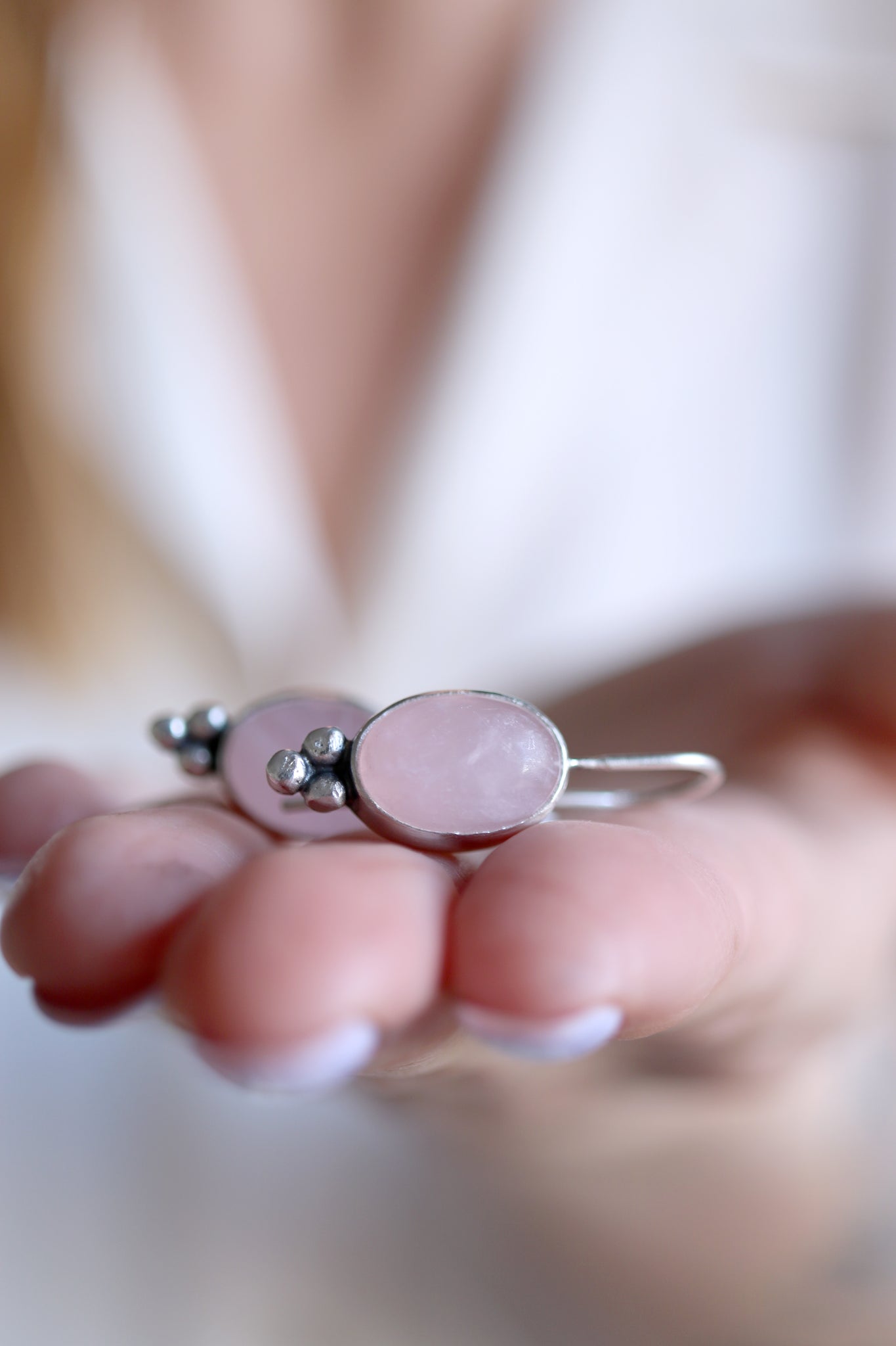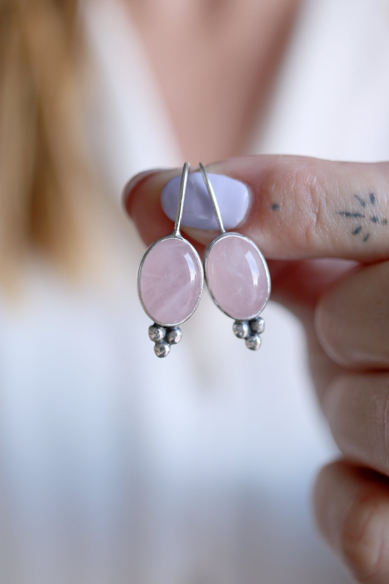 Sterling silver earrings with natural Pink Quartz anb balls.