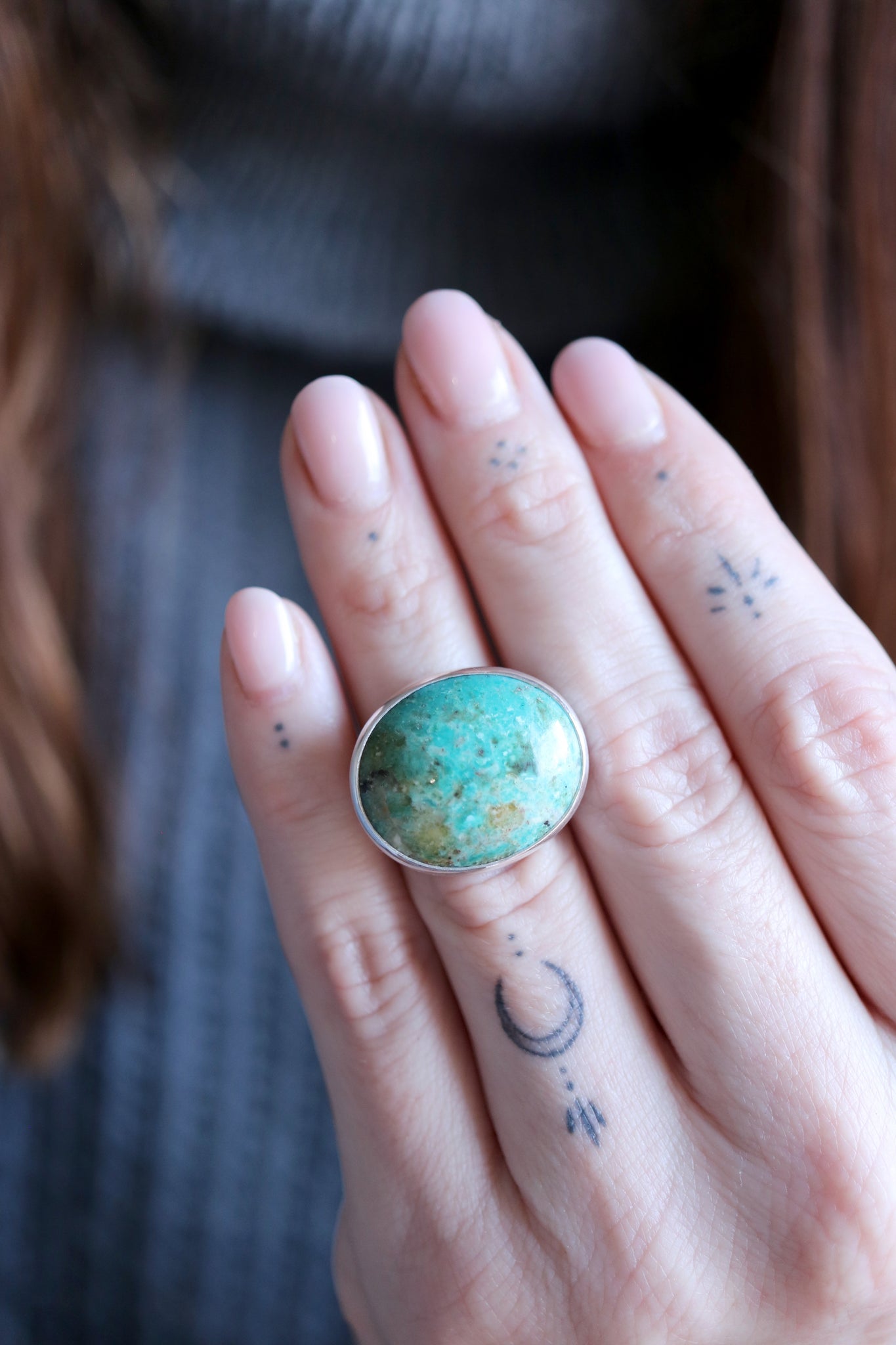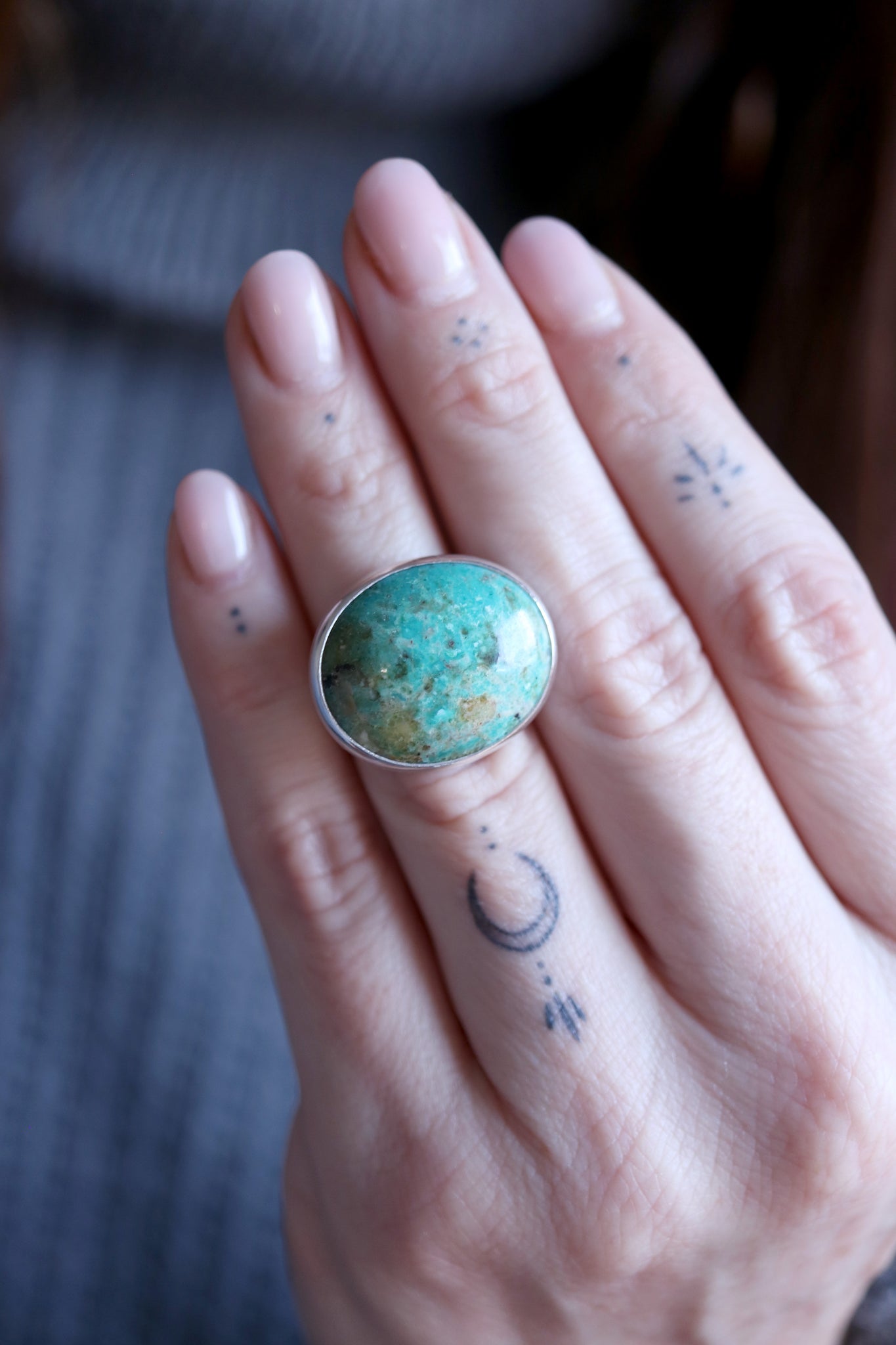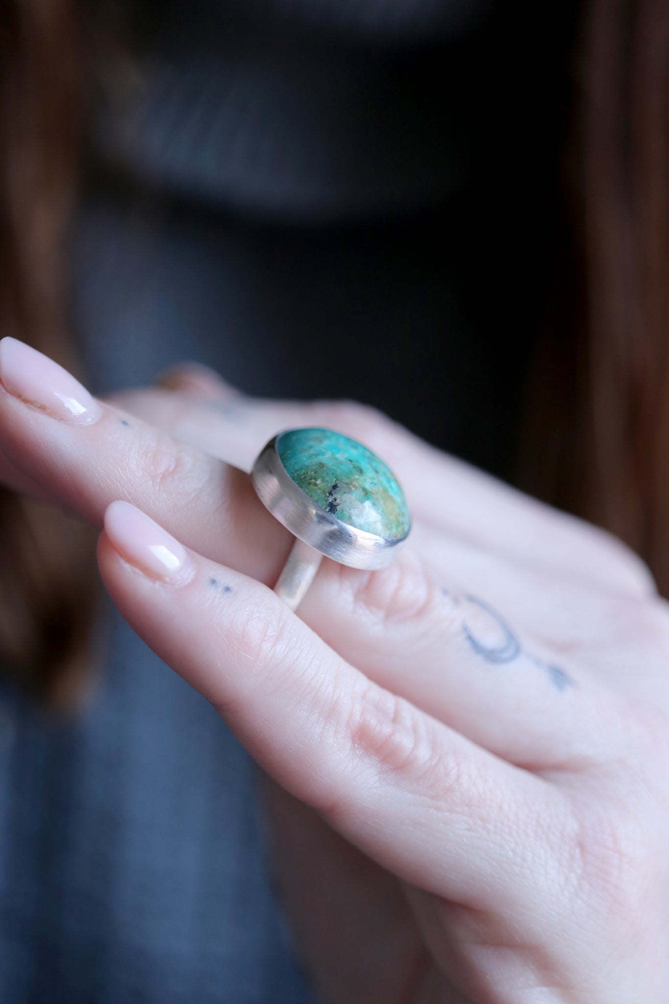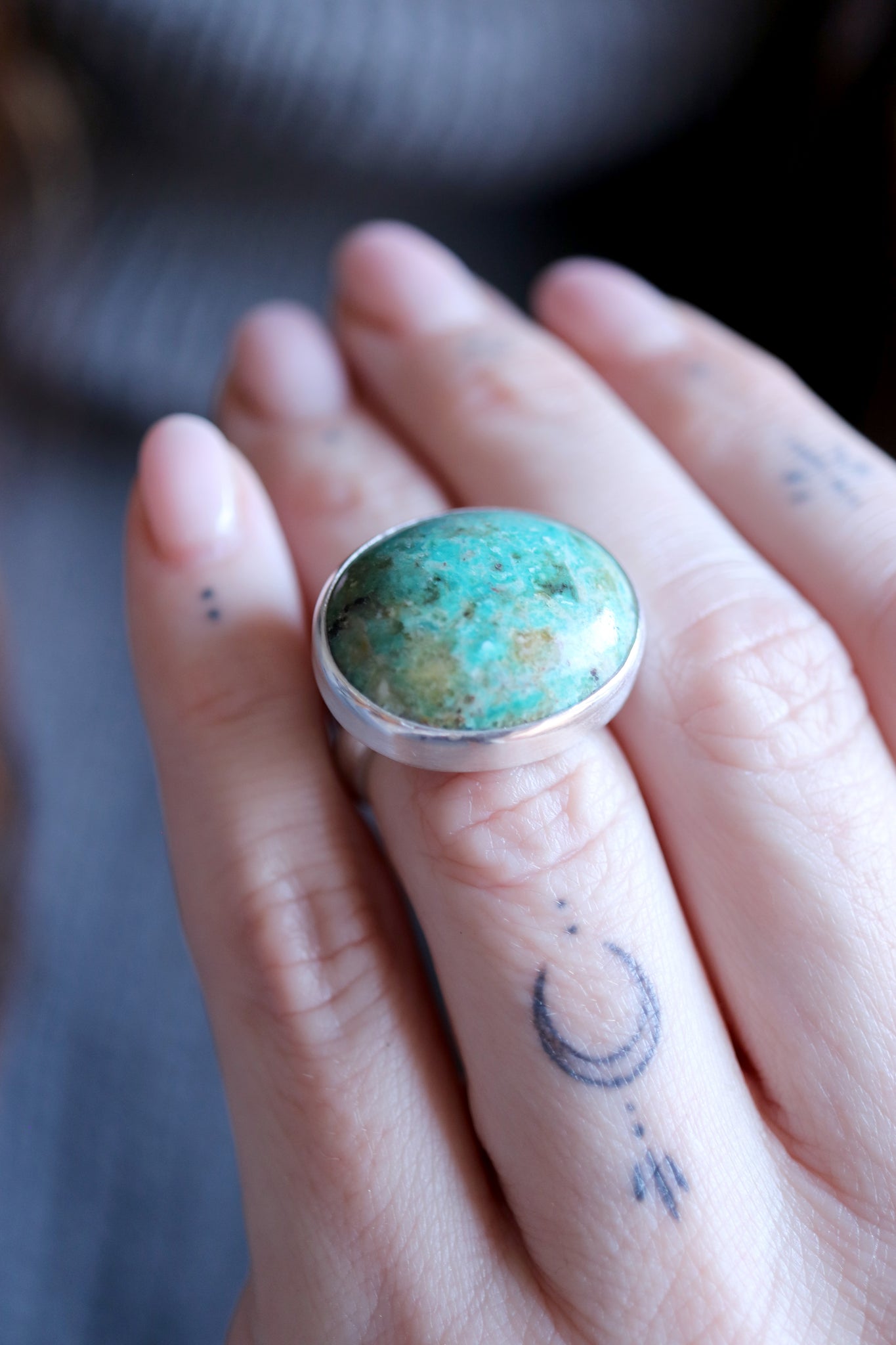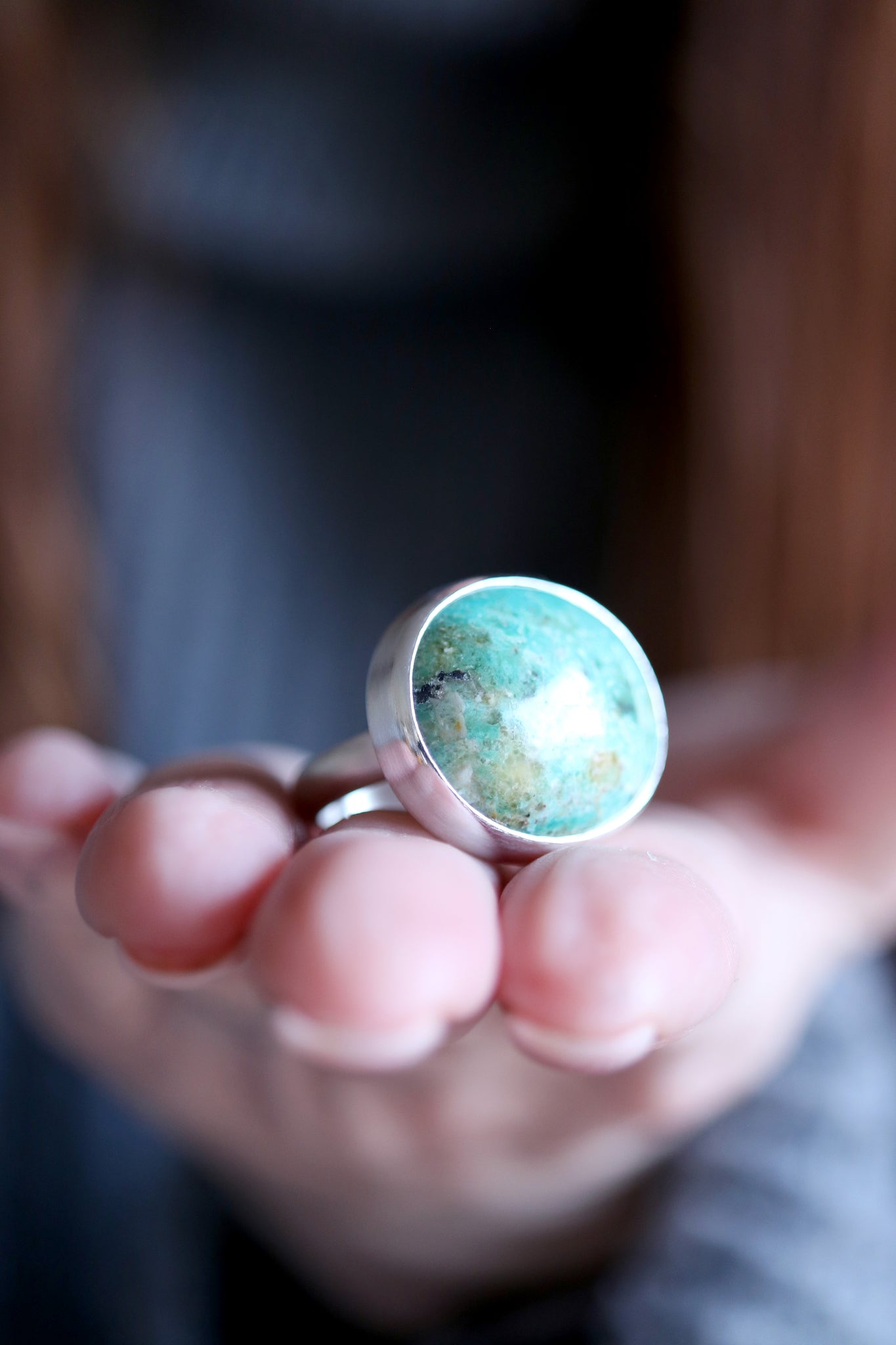 It's set in a simple sterling silver setting with a half round 4mm wide band.